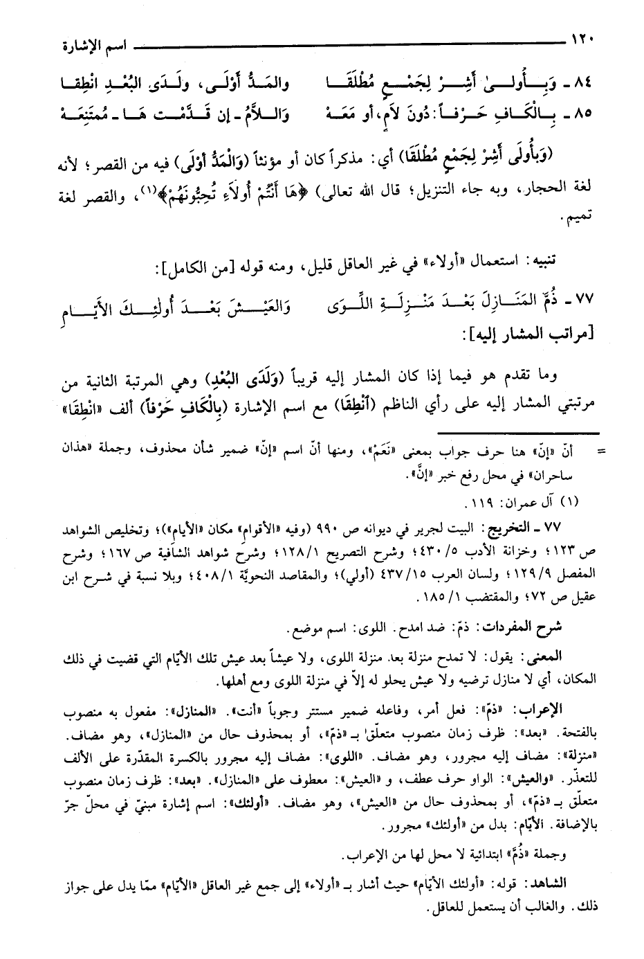 تنبيه: استعمال "أولاء" في غير العاقل قليل، ومنه قوله "من الكامل":