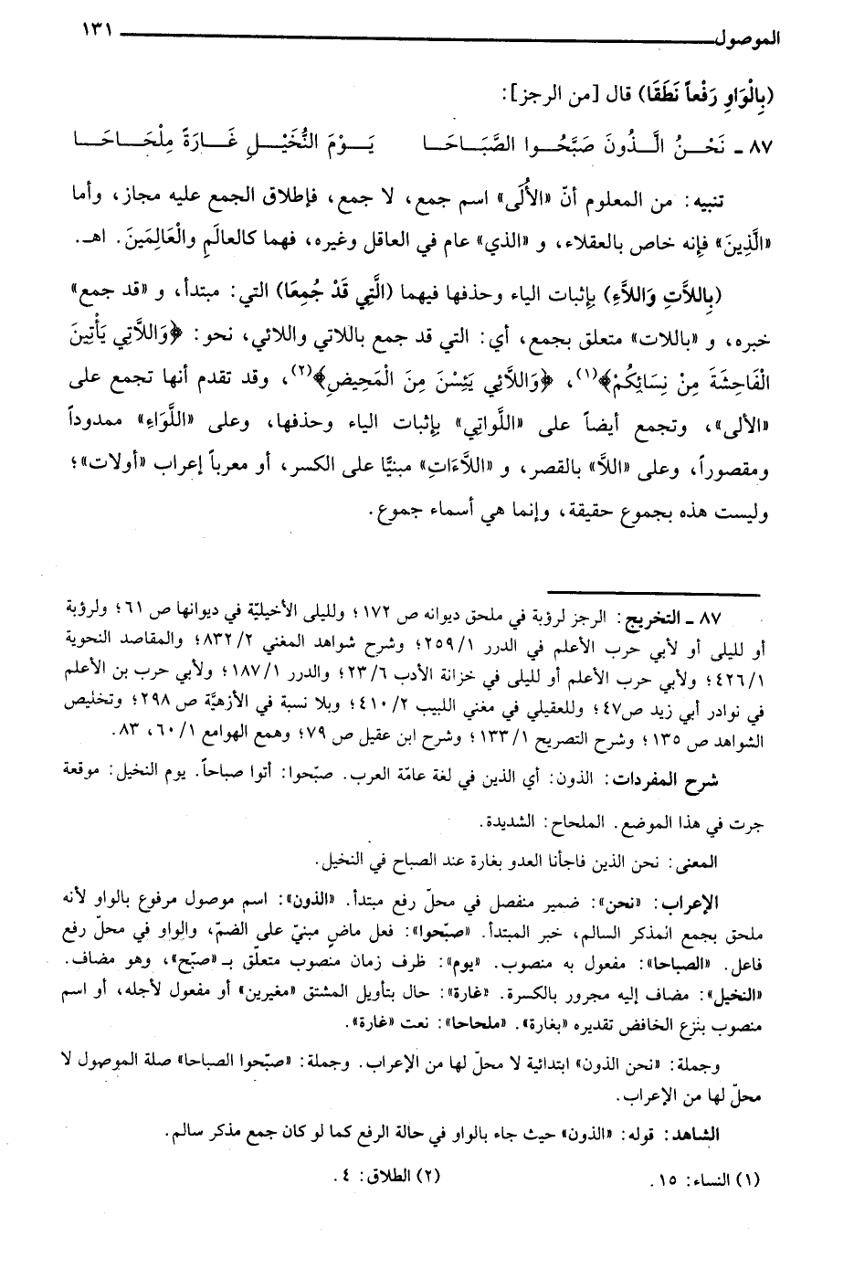 الشاهد: قوله: "الذون" حيث جاء بالواو في حالة الرفع كما لو كان جمع مذكر سالم.