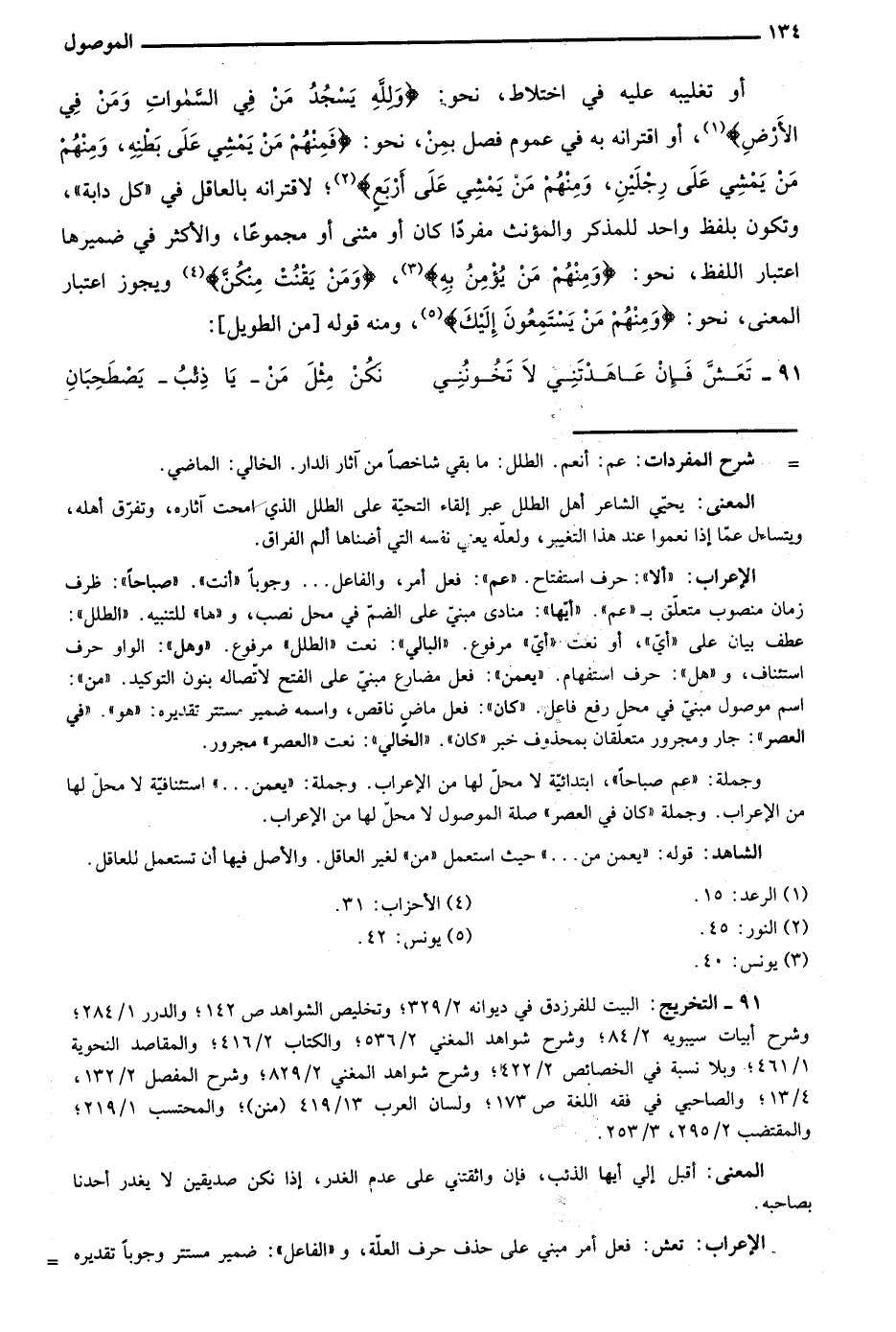 91- التخريج: البيت للفرزدق في ديوانه 2/ 329؛ وتخليص الشواهد ص142؛ والدرر 1/ 284؛ وشرح أبيات سيبويه 2/ 84؛ وشرح شواهد المغني 2/ 536؛ والكتاب 2/ 416؛ والمقاصد النحوية 1/ 461؛ وبلا نسبة في الخصائص 2/ 422؛ وشرح شواهد المغني 2/ 829؛ وشرح المفصل 2/ 132، 4/ 13؛ والصاحبي في فقه اللغة ص173؛ ولسان العرب 13/ 419 "منن"؛ والمحتسب "1/ 219؛ والمقتضب 2/ 295، 3/ 253.