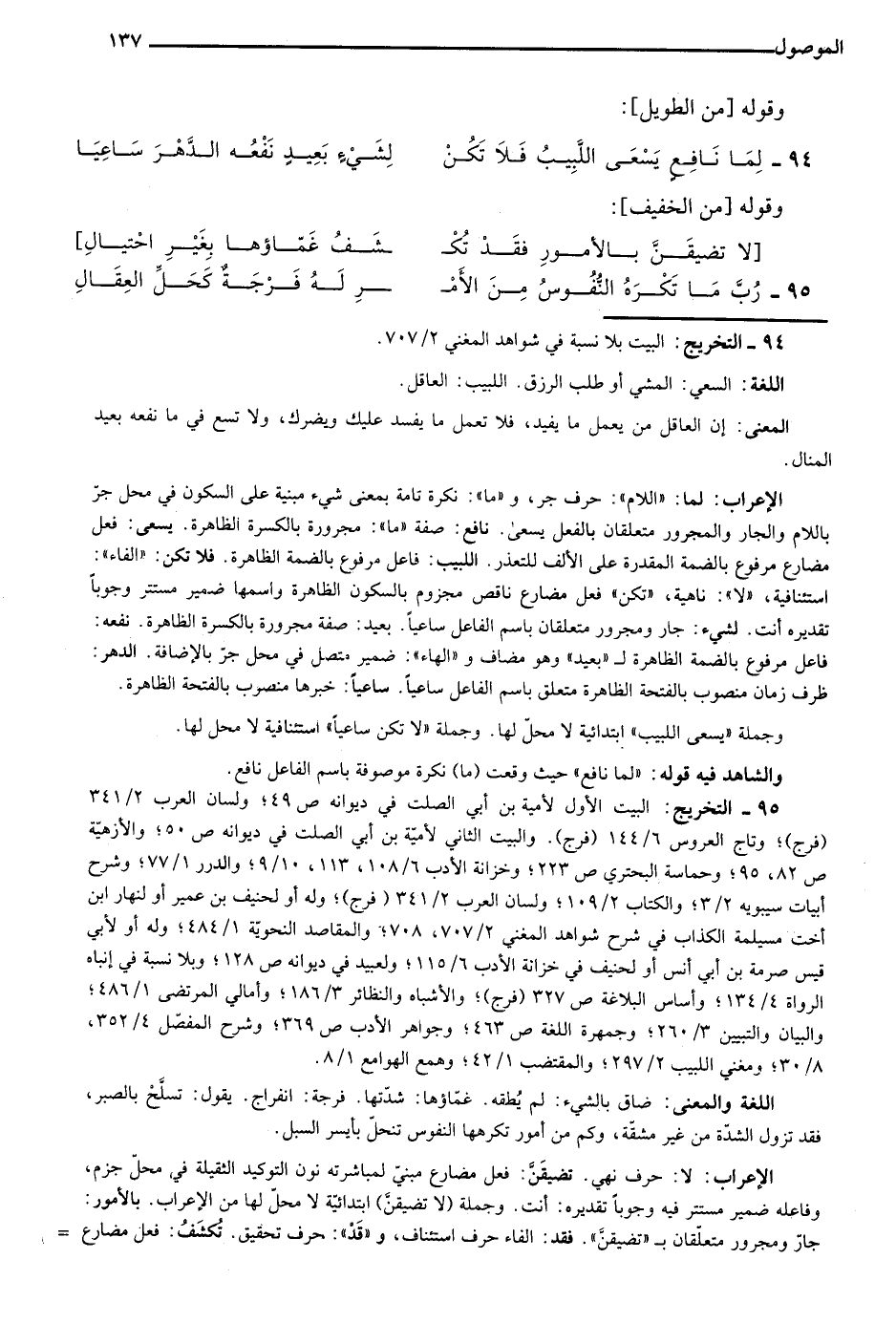 94- التخريج: البيت بلا نسبة في شواهد المغني 2/ 707.