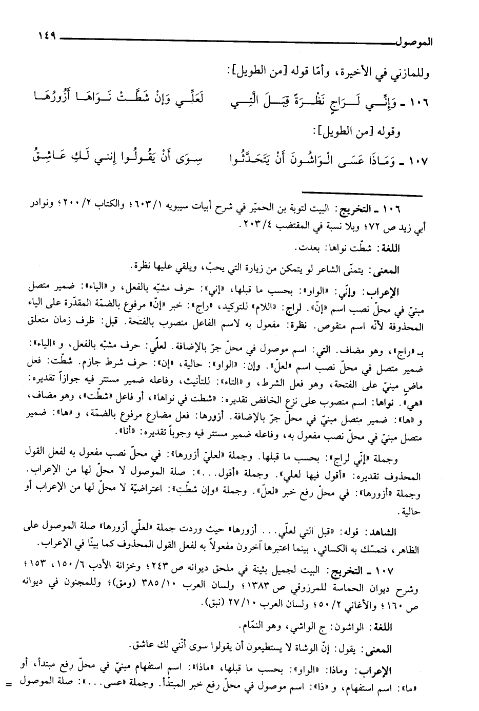 107- التخريج: البيت لجميل بثينة في ملحق ديوانه ص243؛ وخزانة الأدب 6/ 150، 153؛ وشرح ديوان الحماسة للمرزوقي ص1383؛ ولسان العرب 10/ 385 "ومق"؛ وللمجنون في ديوانه ص160؛ والأغاني 2/ 50؛ ولسان العرب 10/ 27 "نبق".