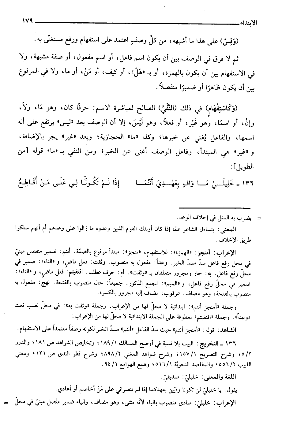 الشاهد: قوله: "أمنجز أنتم" حيث سد الفاعل "أنتم" مسد الخبر لكونه وصفا معتمدا على الاستفهام.