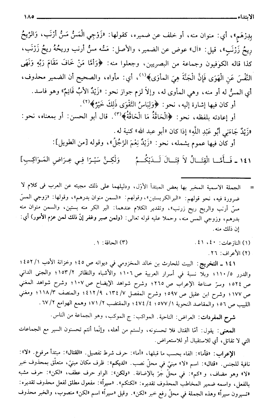 141- التخريج: البيت للحارث بن خالد المخزومي في ديوانه ص45؛ وخزانة الأدب 1/ 452؛ والدرر 5/ 110؛ وبلا نسبة في أسرار العربية ص106؛ والأشباه والنظائر 2/ 153؛ والجنى الداني ص524؛ وسر صناعة الإعراب ص265؛ وشرح شواهد الإيضاح ص107؛ وشرح شواهد المغني ص177؛ وشرح ابن عقيل ص597؛ وشرح المفصل 7/ 134، 9/ 412؛ والمنصف 3/ 118؛ ومغني اللبيب ص56؛ والمقاصد النحوية 1/ 577؛ 4/ 474؛ والمقتضب 2/ 71؛ وهمع الهوامع 2/ 67.