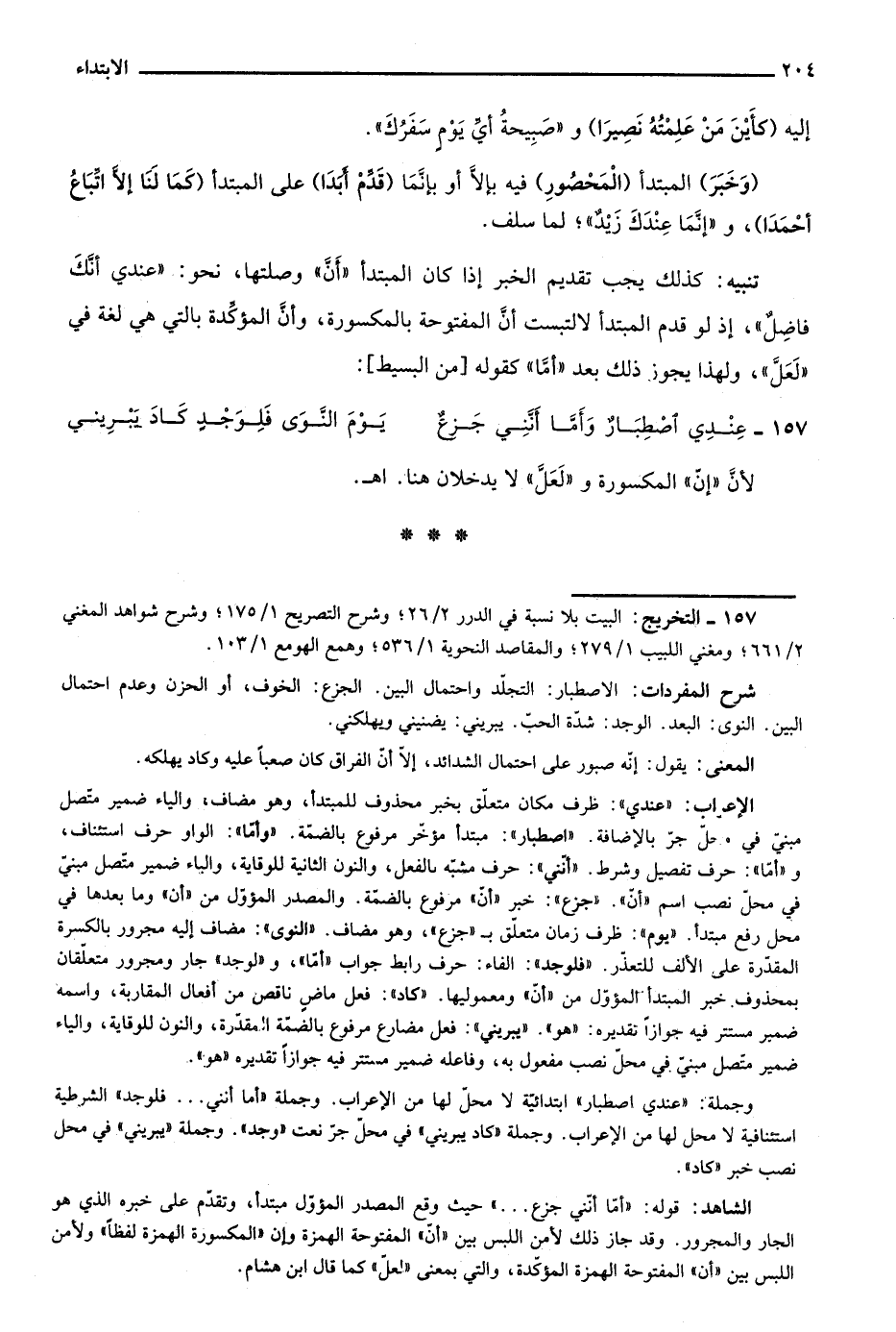 157- التخريج: البيت بلا نسبة في الدرر 2/ 26؛ وشرح التصريح 1/ 175؛ وشرح شواهد المغني 2/ 661؛ ومغني اللبيب 1/ 279؛ والمقاصد النحوية 1/ 536؛ وهمع الهوامع 1/ 103.