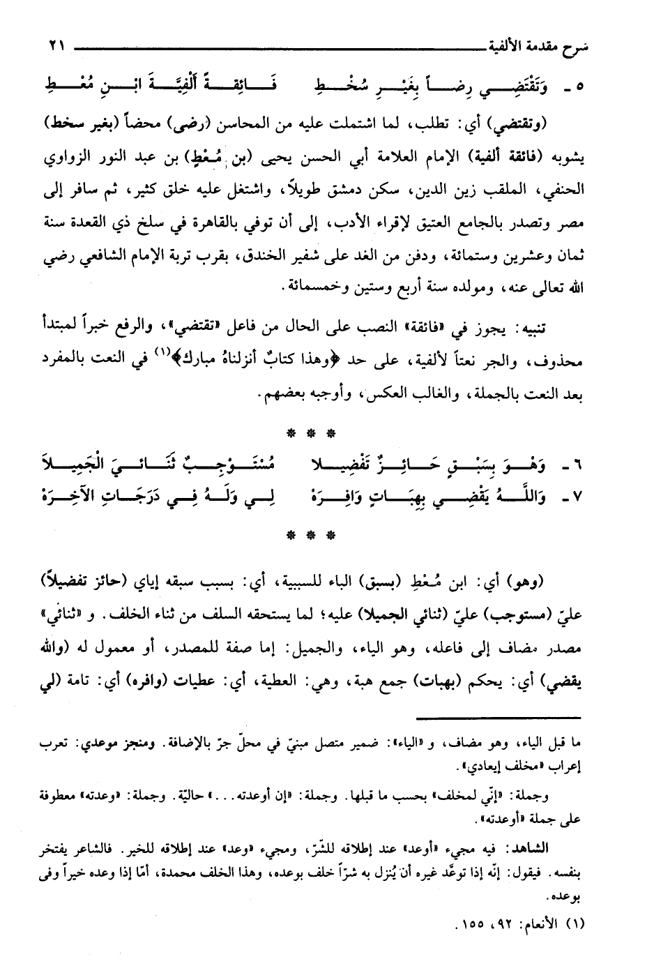5- وتقتضي رضا بغير سخط ... فائقة ألفية ابن معط