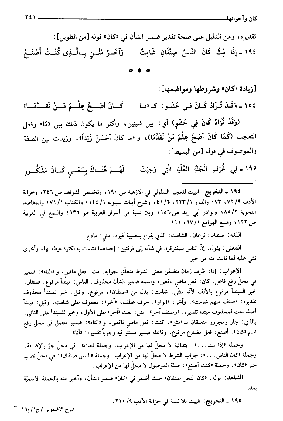 الشاهد: قوله: "كان الناس صنفان" حيث أضمر في "كان" ضمير الشأن، وأخبر عنه بالجملة الاسمية بعده.
