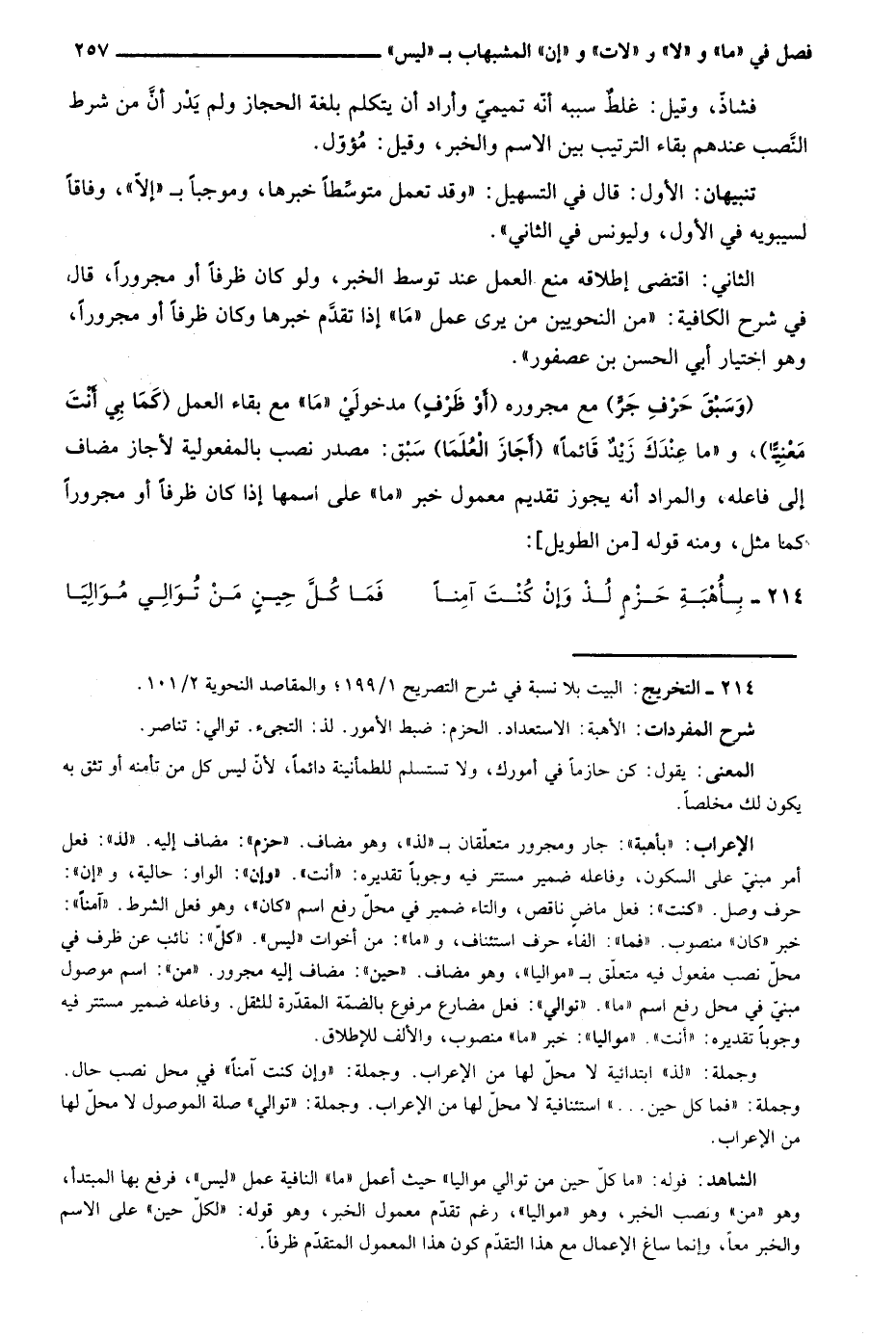 214- التخريج: البيت بلا نسبة في شرح التصريح 1/ 199؛ والمقاصد النحوية 2/ 101.