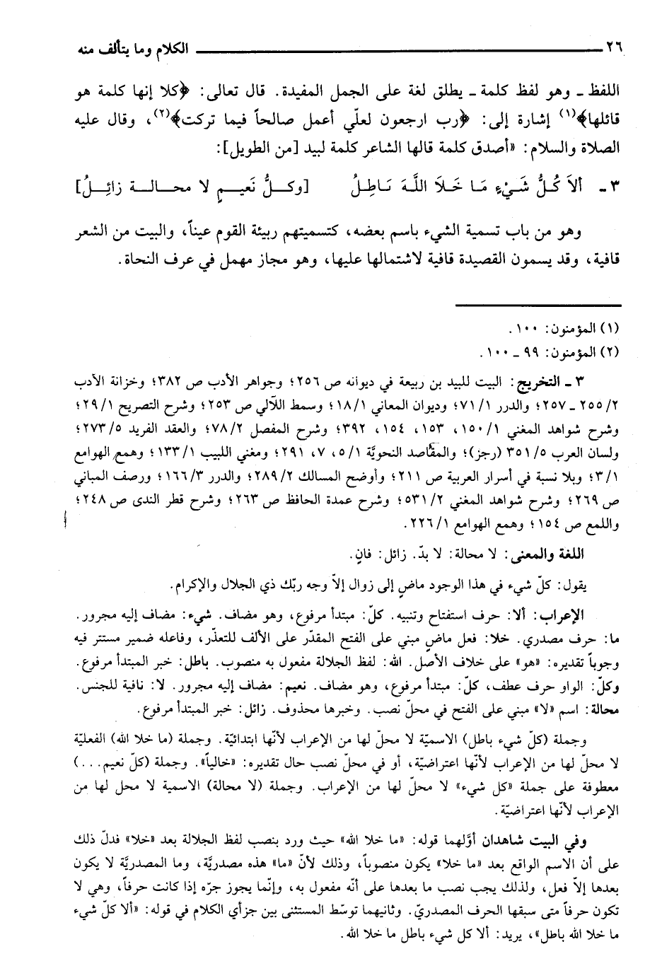 3- أَلاَ كُلُّ شَيْء مَا خَلاَ الله بَاطِلُ ... "وكل نعيم لا محالة زائل"