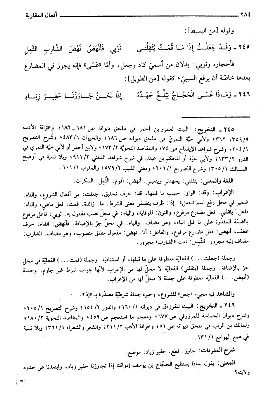 245- التخريج: البيت لعمرو بن أحمر في ملحق ديوانه ص181-182؛ وخزانة الأدب 9/ 359، 362؛ ولأبي حية النمري في ملحق ديوانه ص186؛ والحيوان 6/ 483؛ وشرح التصريح 1/ 204؛ وشرح شواهد الإيضاح ص74؛ والمقاصد النحوية 2/ 173؛ ولابن أحمر أو لأبي حية النمري في الدرر 2/ 133؛ ولأبي حية أو للحكم بن عبدل في شرح شواهد المغني 2/ 911؛ وبلا نسبة في أوضح المسالك 1/ 305؛ وشرح التصريح 1/ 206؛ ومغني اللبيب 2/ 579؛ والمقرب 1/ 101.