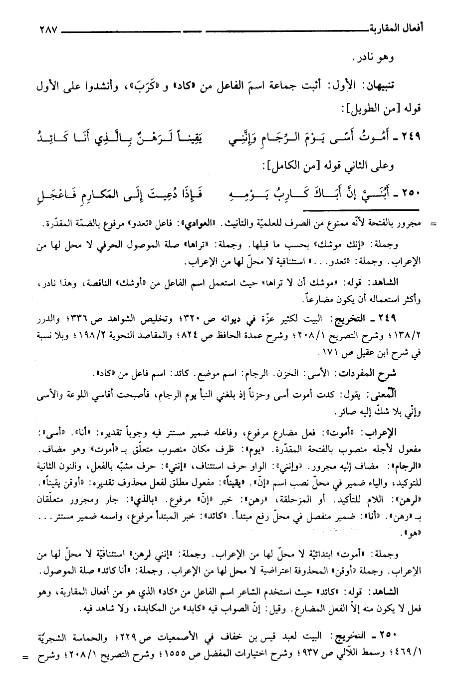 تنبيهان: الأول: أثبت جماعة اسم الفاعل من "كاد" و"كرب"، وأنشدوا على الأول قوله "من الطويل":