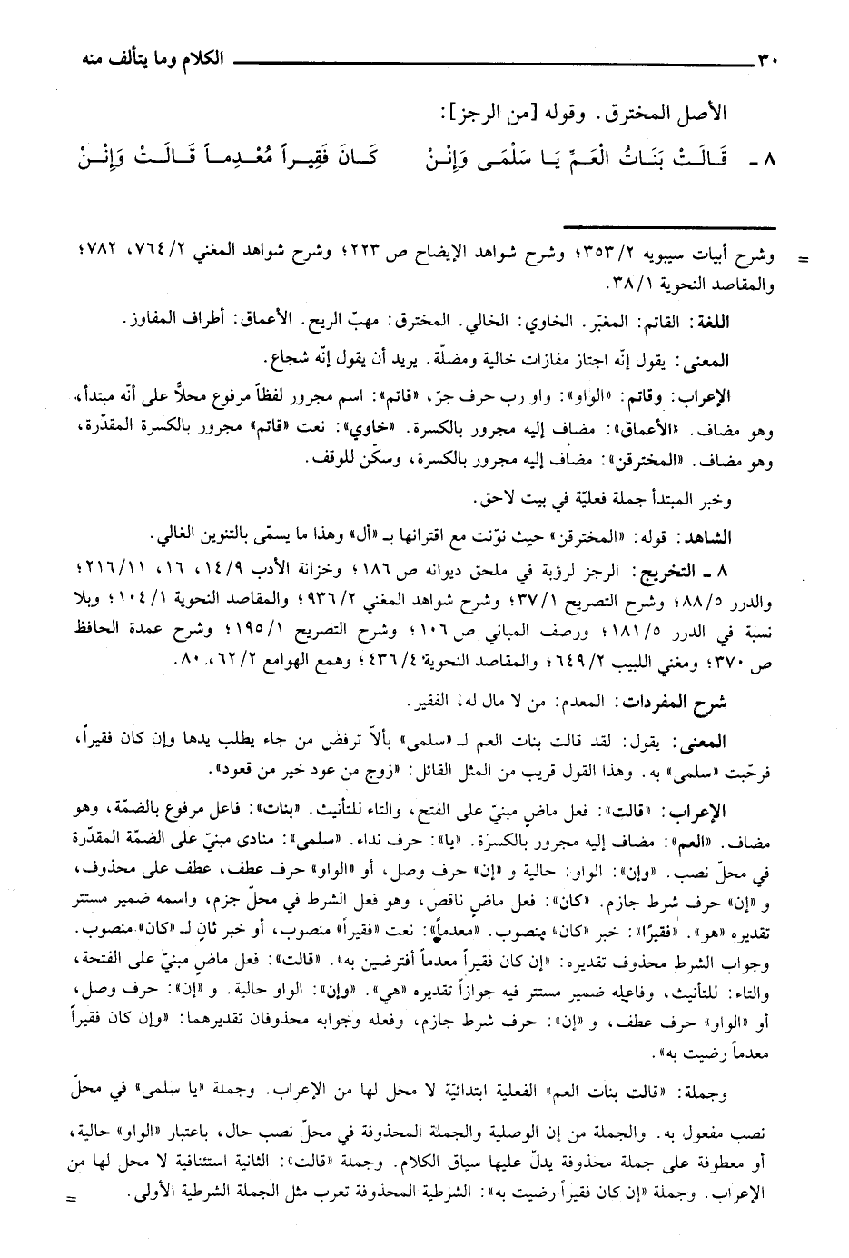 8- قَالَتْ بَنَاتْ الْعَمِّ يَا سَلْمَى وَإِنّ ... كانَ فَقِيرًا مُعْدِمًا قَالَتْ وَإِنّ