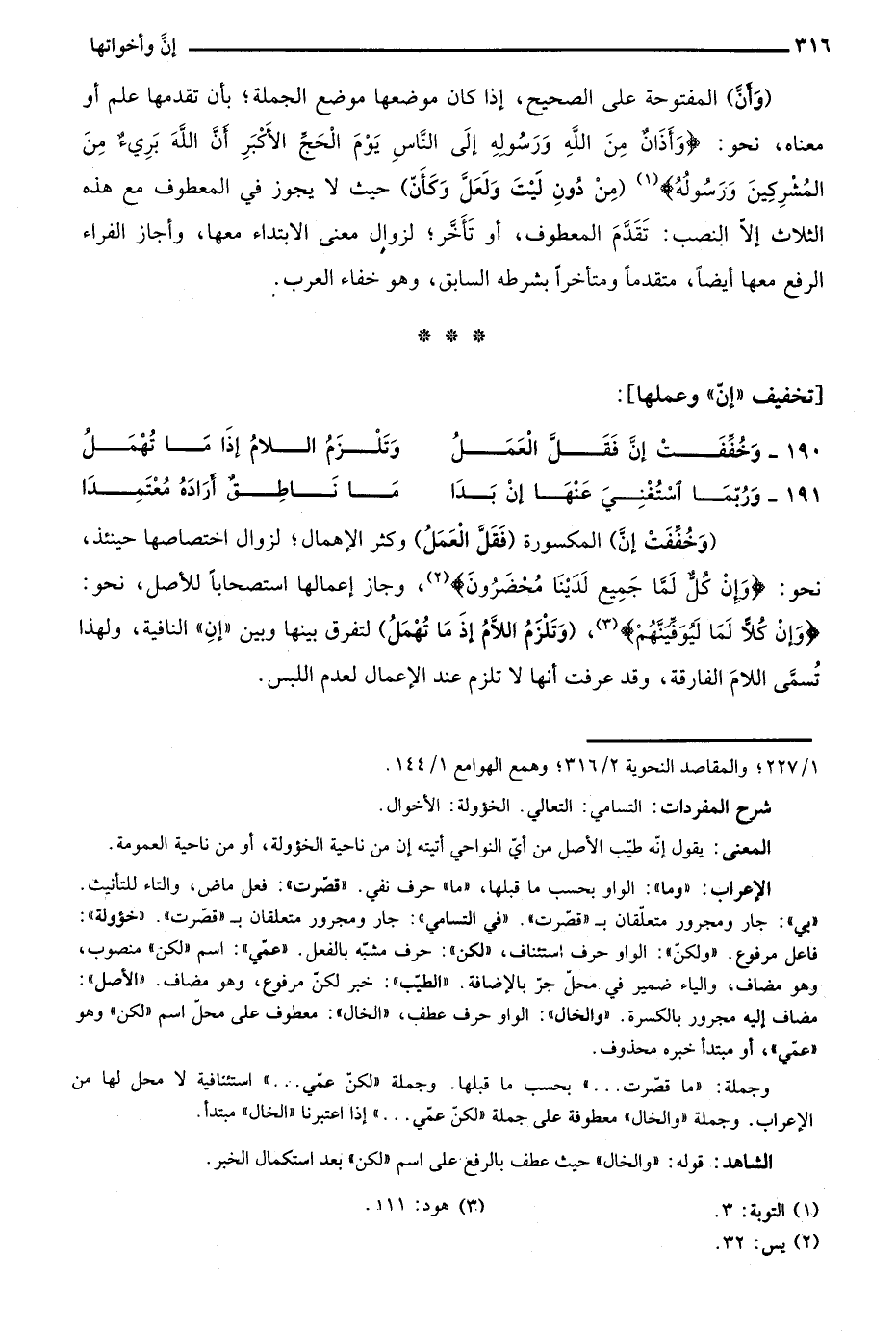 = 1/ 227؛ والمقاصد النحوية 2/ 316؛ وهمع الهوامع 1/ 144.
