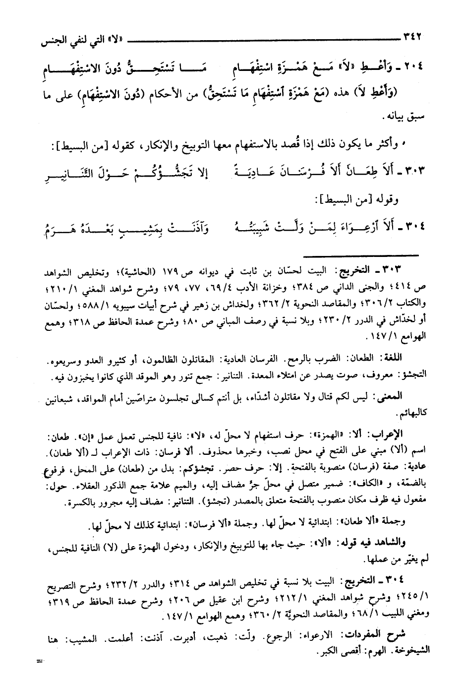 303- التخريج: البيت لحسان بن ثابت في ديوانه ص179 "الحاشية"؛ وتخليص الشواهد ص414؛ والجنى الداني ص384؛ وخزانة الأدب 4/ 69، 77، 79؛ وشرح شواهد المغني 1/ 210؛ والكتاب 2/ 306؛ والمقاصد النحوية 2/ 362؛ ولخداش بن زهير في شرح أبيات سيبويه 1/ 558؛ ولحسان أو لخداش في الدرر 2/ 230؛ وبلا نسبة في رصف المباني ص80؛ وشرح عمدة الحافظ ص318؛ وهمع الهوامع 1/ 147.