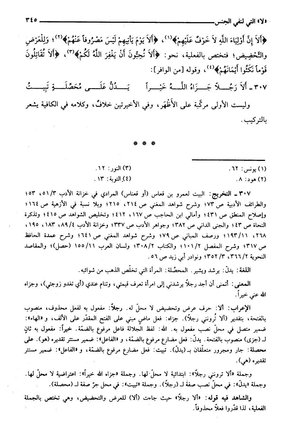307- التخريج: البيت لعمرو بن قعاس "أو قعناس" المرادي في خزانة الأدب 3/ 51، 53؛ والطرائف الأدبية ص73؛ وشرح شواهد المغني ص214، 215؛ وبلا نسبة في الأزهية ص164؛ وإصلاح المنطق ص431؛ وأمالي ابن الحاجب ص167، 412؛ وتخليص الشواهد ص415؛ وتذكرة النحاة ص43؛ والجنى الداني ص382؛ وجواهر الأدب ص337؛ وخزانة الأدب 4/ 89، 183، 195، 268، 11/ 193؛ ورصف المباني ص79؛ وشرح شواهد المغني ص641؛ وشرح عمدة الحافظ ص317؛ وشرح المفصل 2/ 101؛ والكتاب 2/ 308؛ ولسان العرب 11/ 155 "حصل"؛ والمقاصد النحوية 2/ 366، 3/ 352؛ ونوادر أبي زيد ص56.