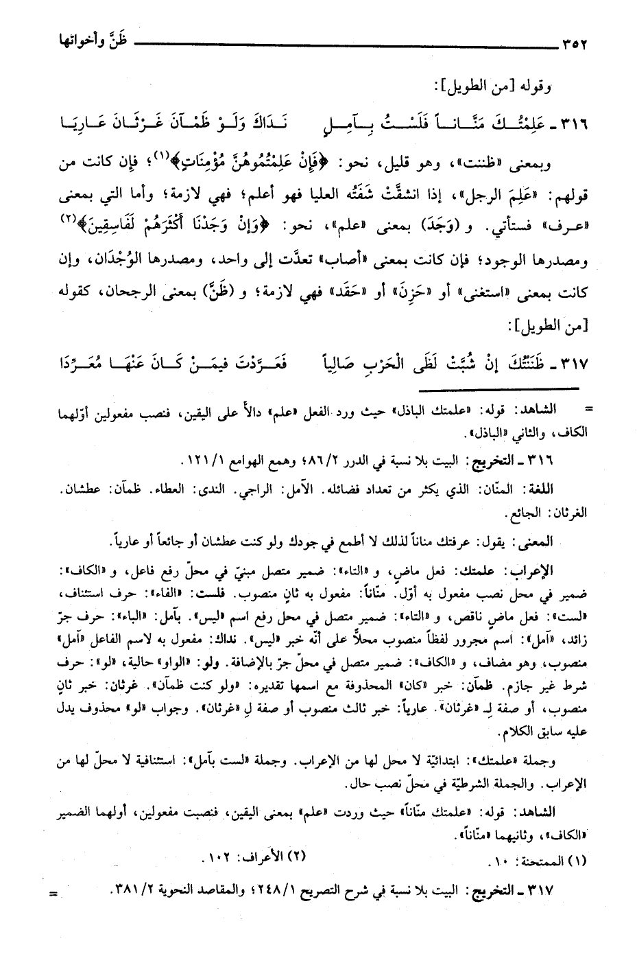316- التخريج: البيت بلا نسبة في الدرر 2/ 86؛ وهمع الهوامع 1/ 121.