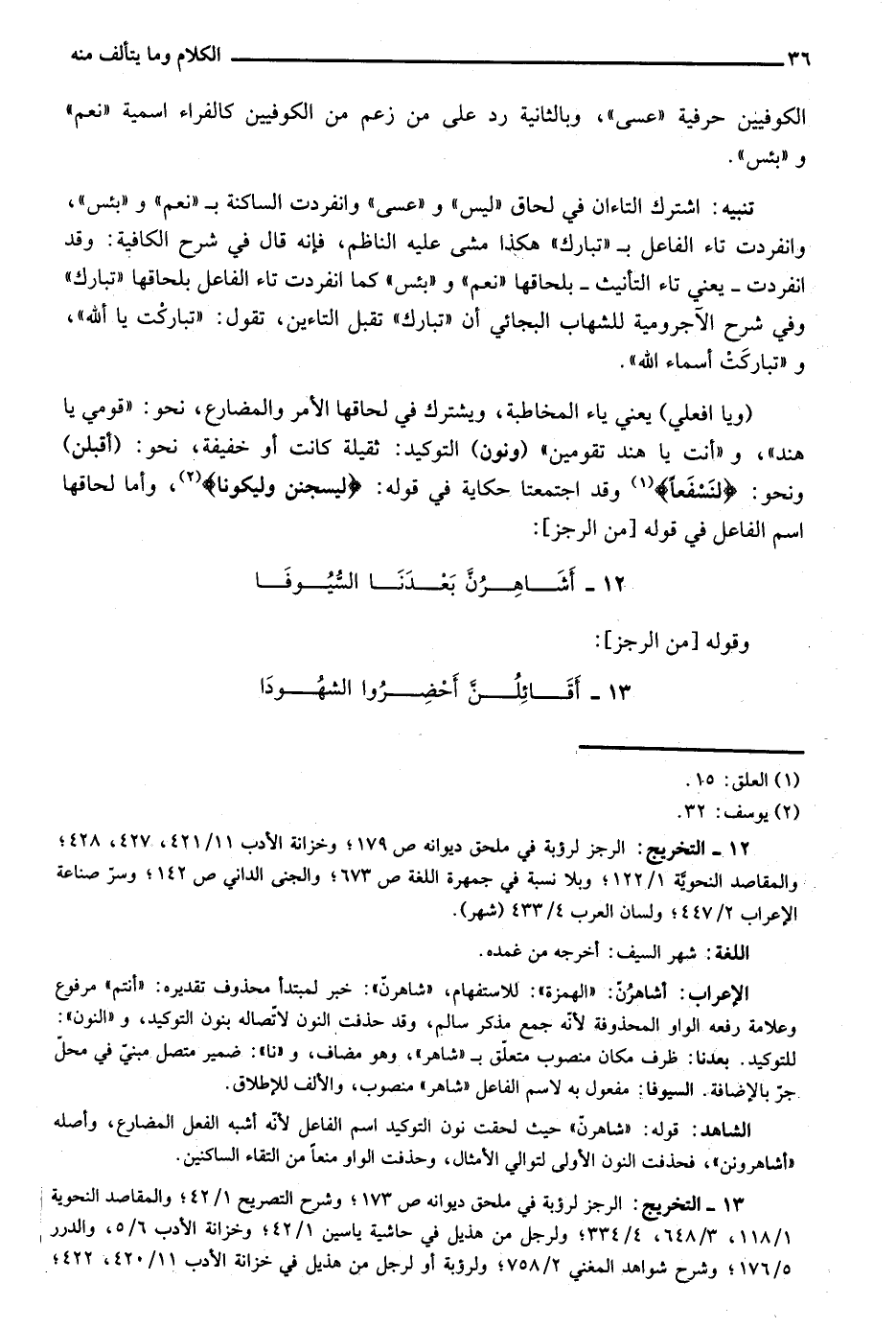 13- التخريج: الرجز لرؤبة في ملحق ديوانه ص173؛ وشرح التصريح 1/ 42؛ والمقاصد النحوية 1/ 118، 3/ 648، 4/ 334؛ ولرجل من هذيل في حاشية ياسين 1/ 42؛ وخزانة الأدب 6/ 5، والدرر 5/ 176؛ وشرح شواهد المغني 2/ 758؛ ولرؤبة أو لرجل من هذيل في خزانة الأدب 11/ 420، 422؛ =
