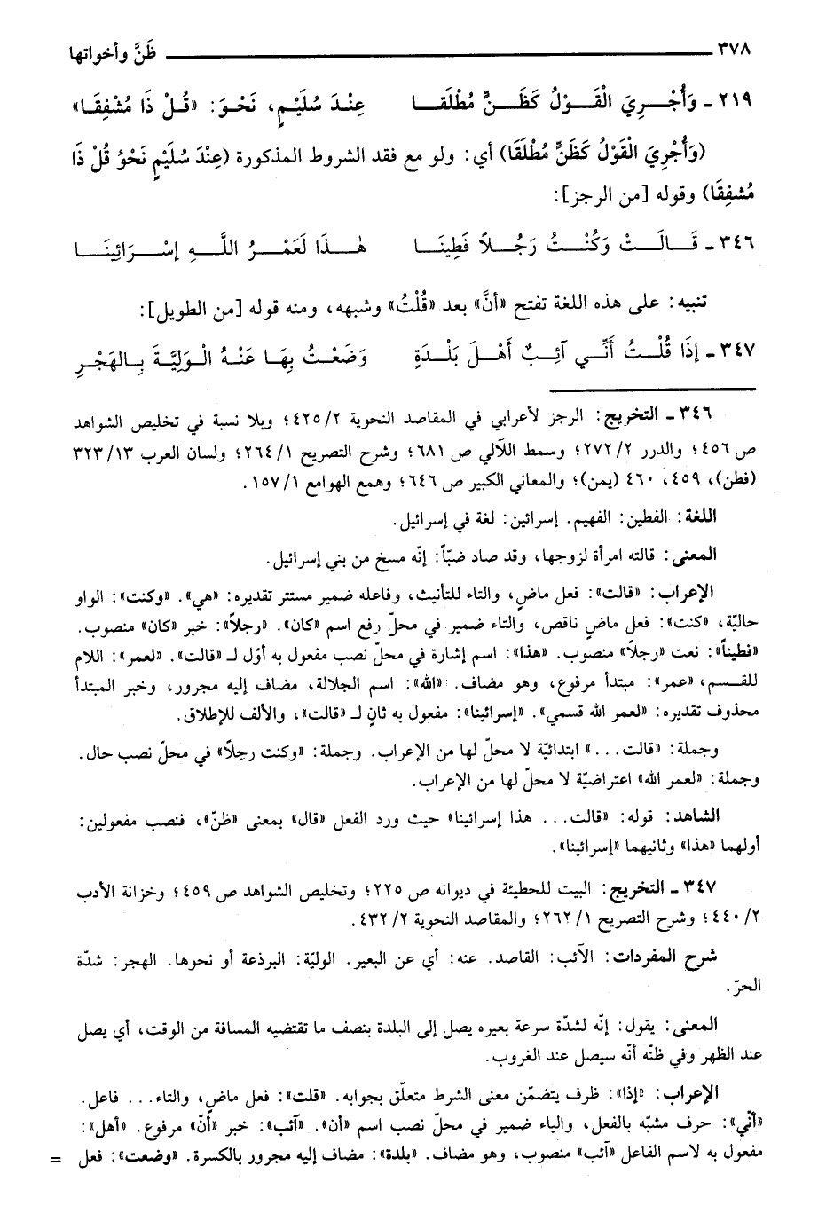347- التخريج: البيت للحطيئة في ديوانه ص225؛ وتخليص الشواهد ص459؛ وخزانة الأدب 2/ 440؛ وشرح التصريح 1/ 262؛ والمقاصد النحوية 2/ 432.