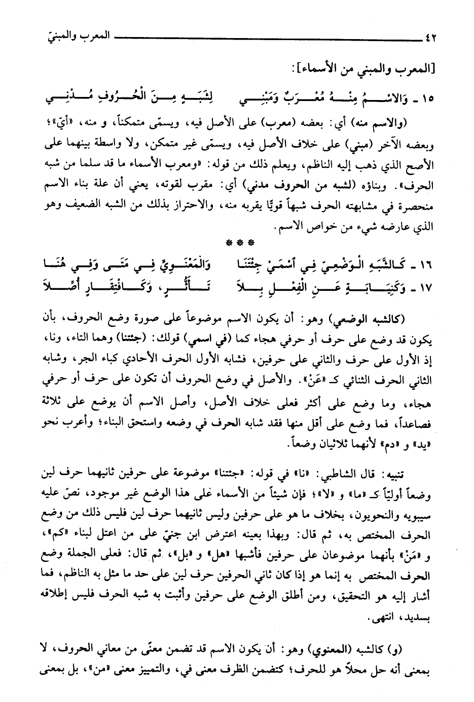 15- والاسم منه معرب ومبني ... لشبه من الحروف مدني