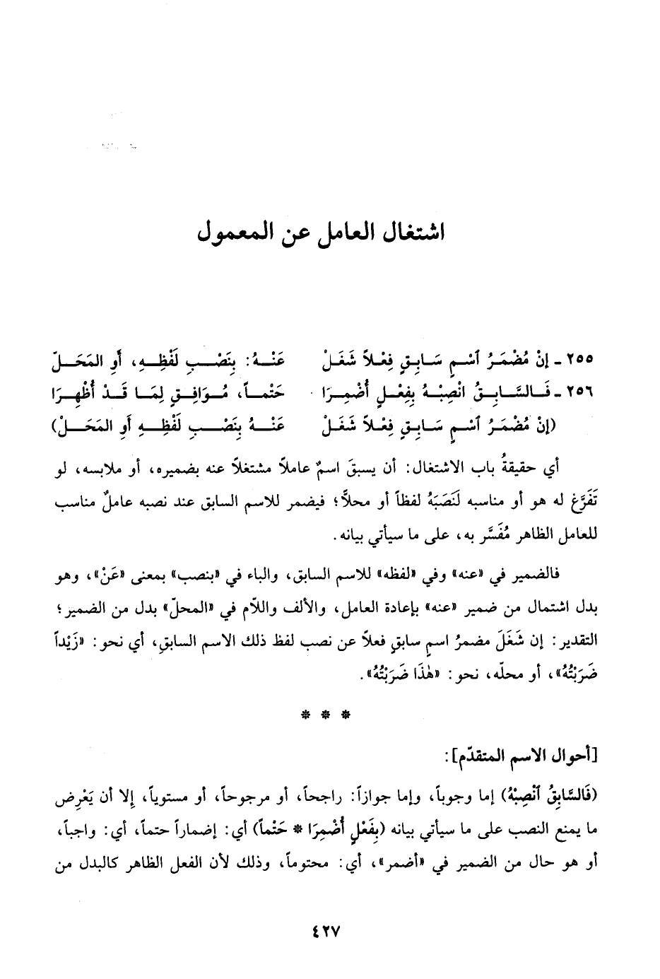 "إن مضمر اسم سابق فعلا شغل ... عنه بنصب لفظه أو المحل"