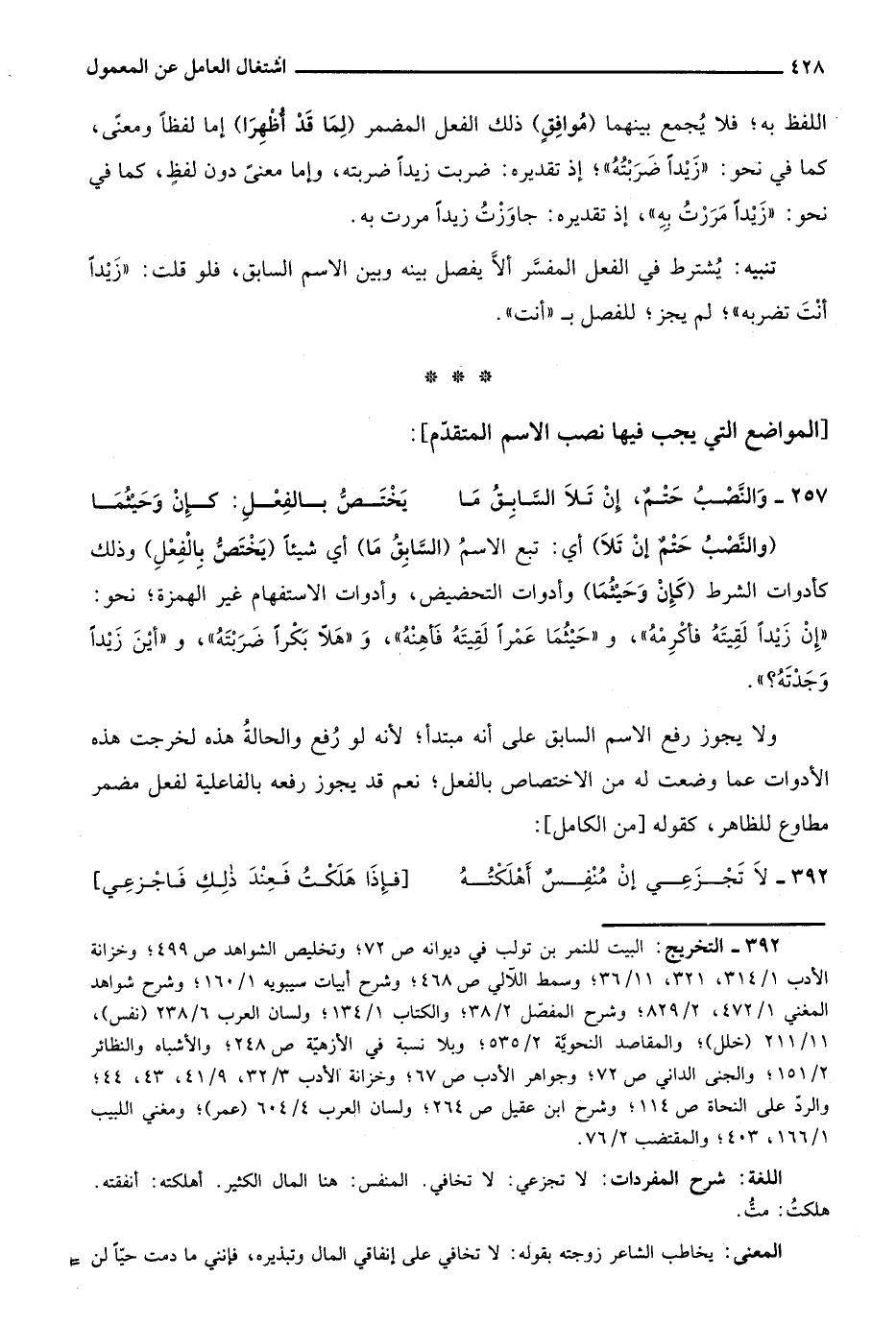 392- التخريج: البيت للنمر بن تولب في ديوانه ص72؛ وتخليص الشواهد ص499؛ وخزانة الأدب 1/ 314، 321، 11/ 36؛ وسمط اللآلي ص468؛ وشرح أبيات سيبويه 1/ 160؛ وشرح شواهد المغني 1/ 472، 2/ 829؛ وشرح المفصل 2/ 38؛ والكتاب 1/ 134؛ ولسان العرب 6/ 238 "نفس"، 11/ 211 "خلل"؛ والمقاصد النحوية 2/ 535؛ وبلا نسبة في الأزهية ص248؛ والأشباه والنظائر 2/ 151؛ والجنى الداني ص72؛ وجواهر الأدب ص67؛ وخزانة الأدب 3/ 32، 6/ 41، 43، 44؛ والرد على النحاة ص114؛ وشرح ابن عقيل ص264؛ ولسان العرب 4/ 604 "عمر"؛ ومغني اللبيب 1/ 166، 403؛ والمقتضب 2/ 76 "عمر"؛ ومغني اللبيب 1/ 166، 403؛ والمقتضب 2/ 76.