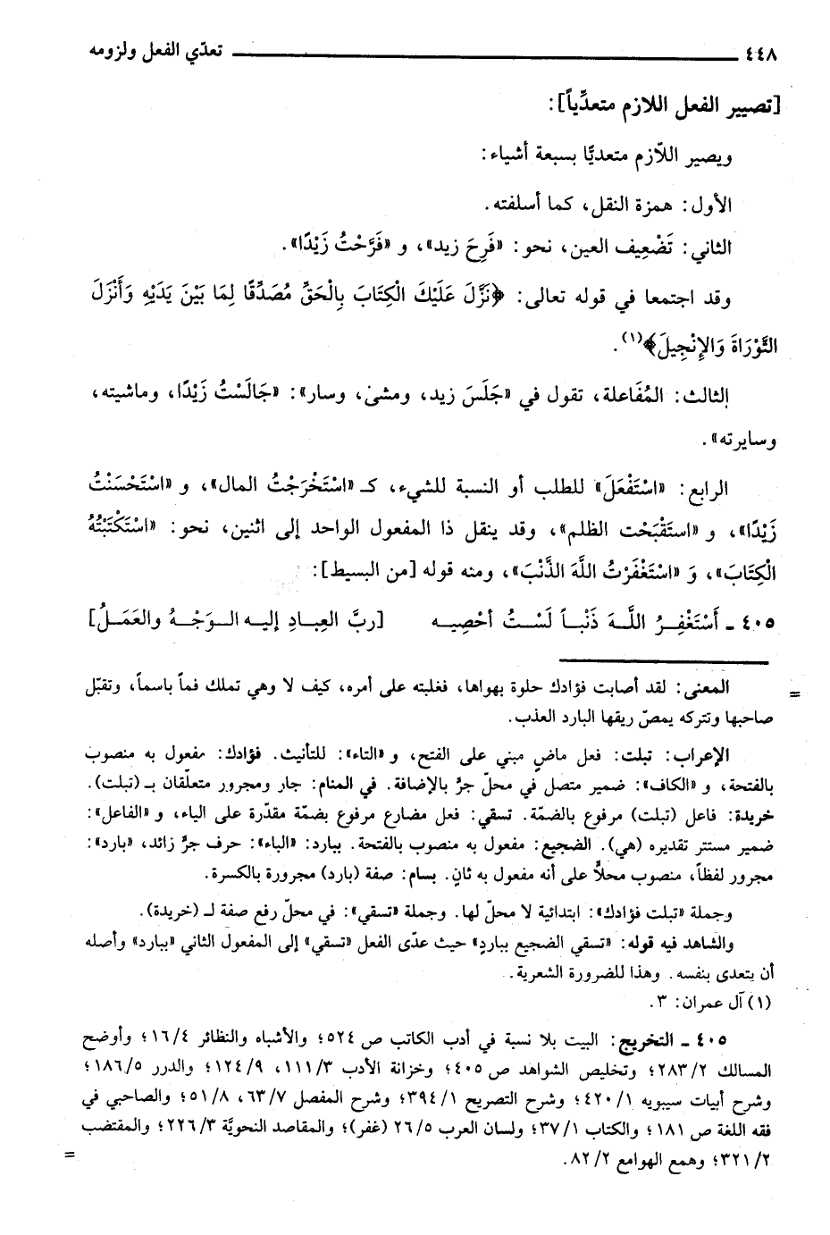 الرابع: "استفعل" للطلب أو النسبة للشيء، كـ"استخرجت المال"، و"استحسنت زيدا"، و"استقبحت الظلم"، وقد ينقل ذا المفعول الواحد إلى اثنين، نحو: "استكتبته الكتاب"، و"استغفرت الله الذنب"، ومنه قوله "من البسيط":