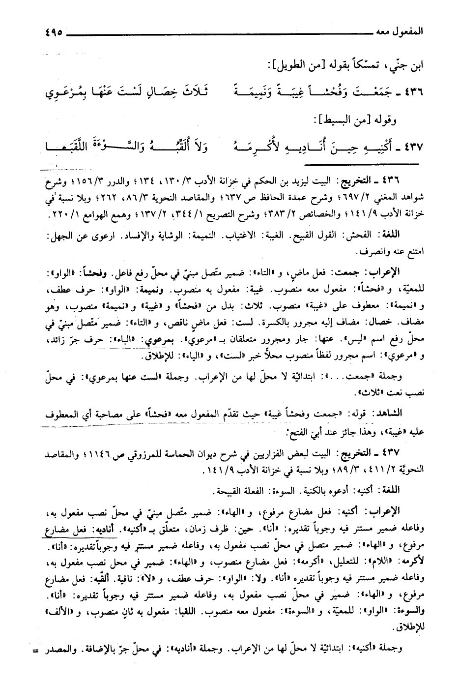 437- التخريج: البيت لبعض الفزاريين في شرح ديوان الحماسة للمرزوقي ص1146؛ والمقاصد النحوية 2/ 411، 3/ 89؛ وبلا نسبة في خزانة الأدب 9/ 141.