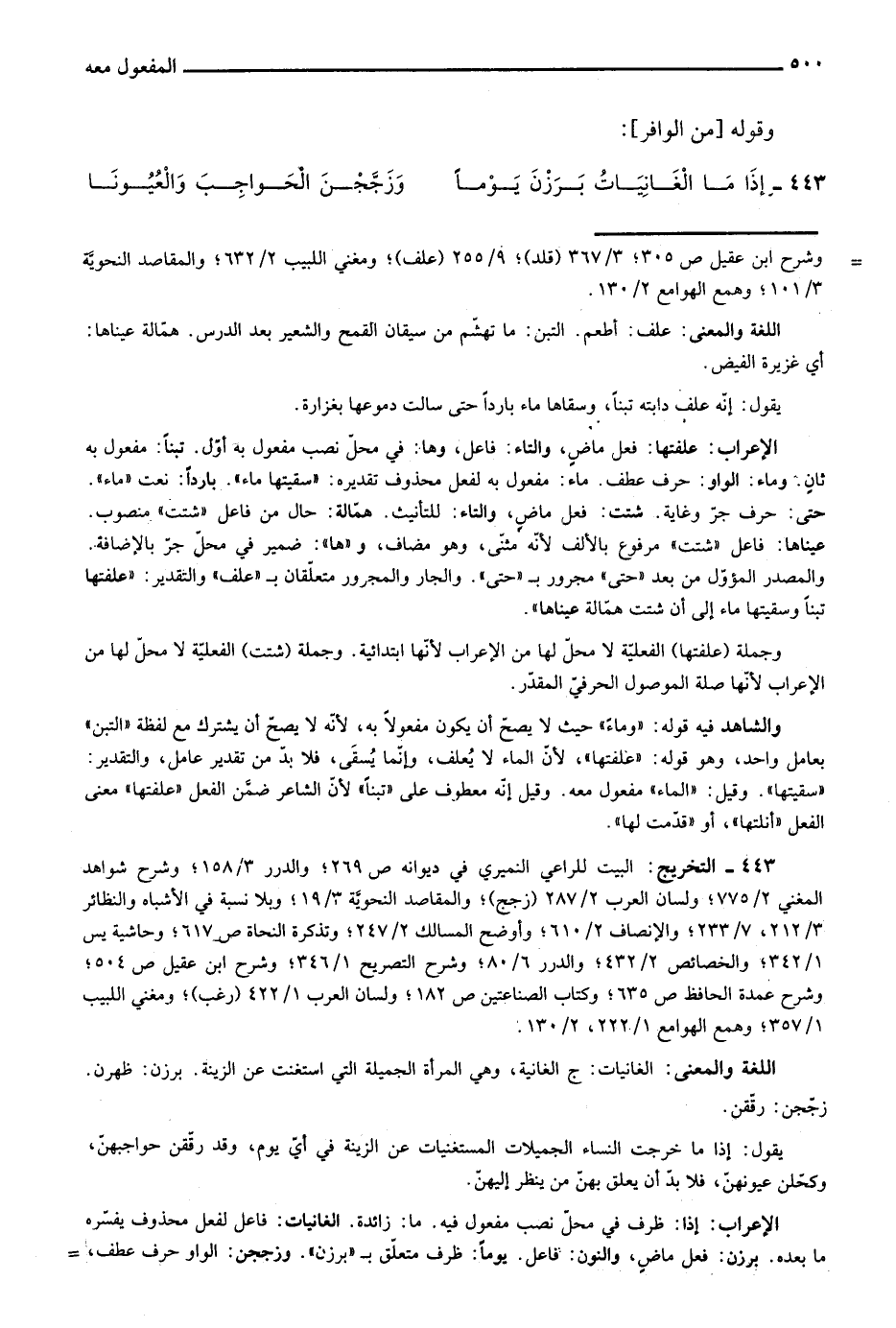 = وشرح ابن عقيل ص305؛ 3/ 367 "قلد"؛ 9/ 255 "علف"؛ ومغني اللبيب 2/ 632؛ والمقاصد النحوية 3/ 101؛ وهمع الهوامع 2/ 130.