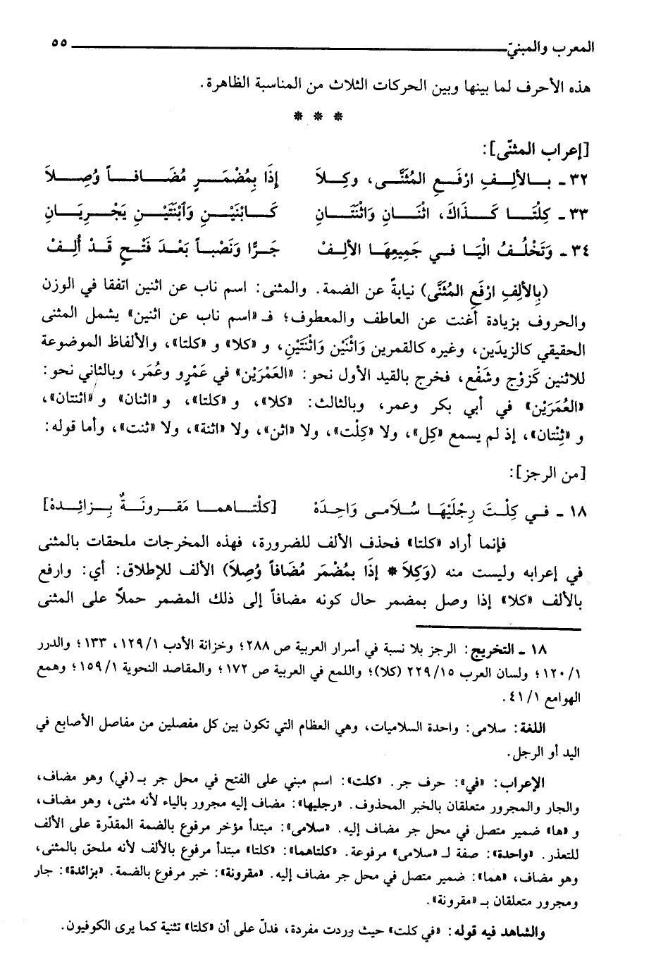 18- فِي كِلْتَ رِجْلَيْهَا سُلاَمَى وَاحِدَهْ ... "كلتاهما مقرونة بزائده"
