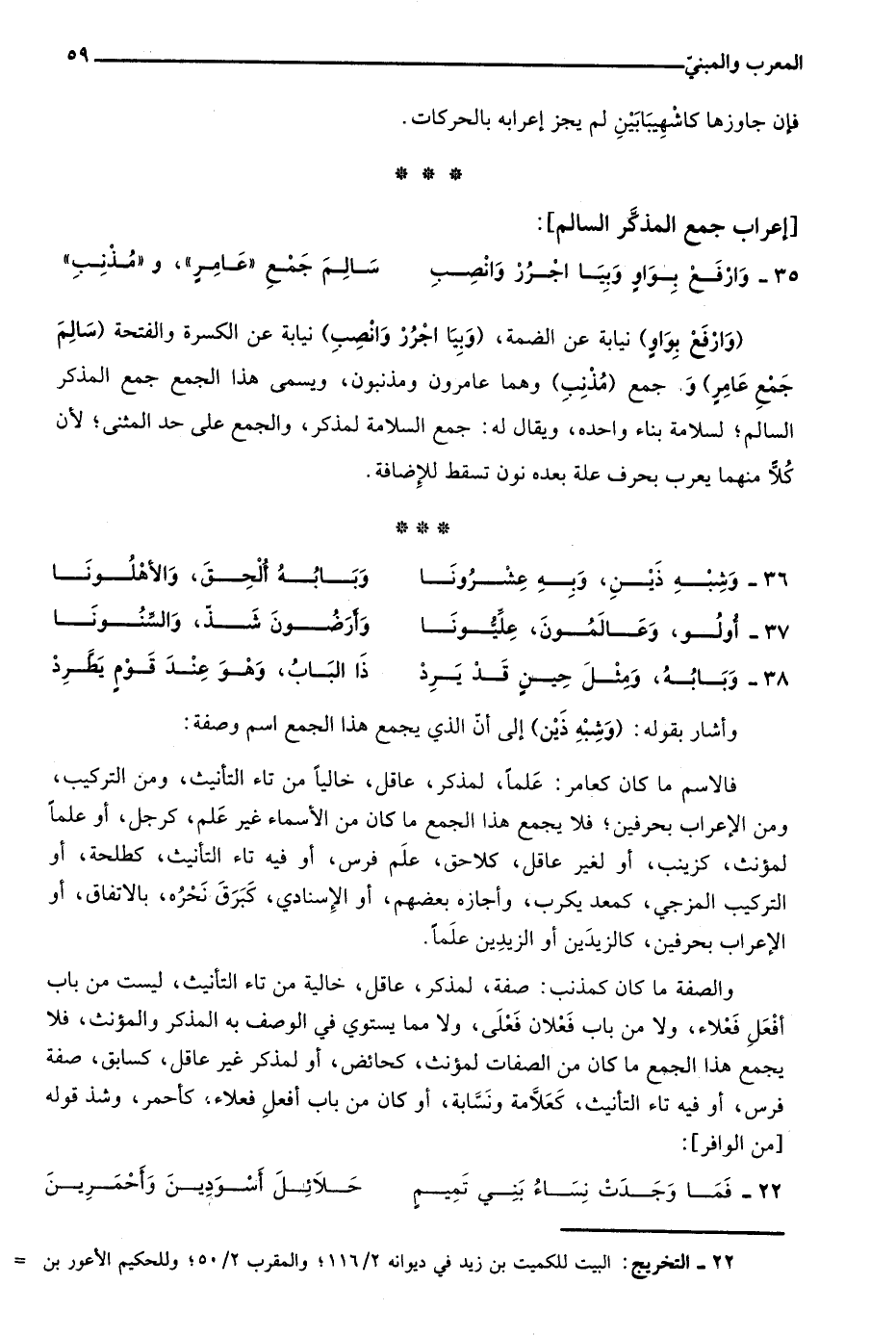 37- أولو وعالمون عليونا ... وأرضون شذ والسنونا