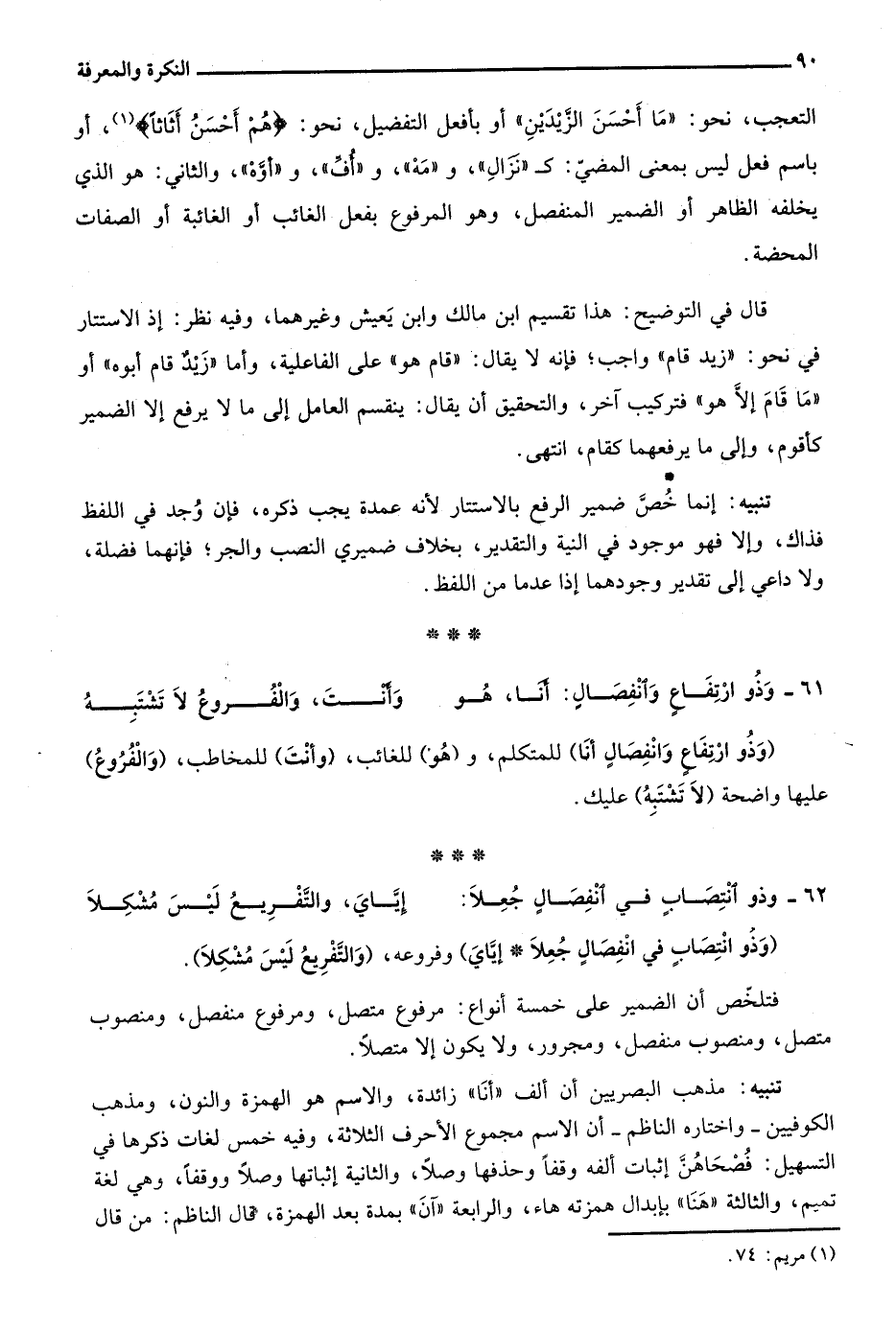 "وَذُو انْتِصَابٍ فِي انْفِصَالٍ جُعِلاَ، إِيَّايَ" وفروعه، "وَالْتَفْرِيعُ لَيْسَ مُشْكِلاً".