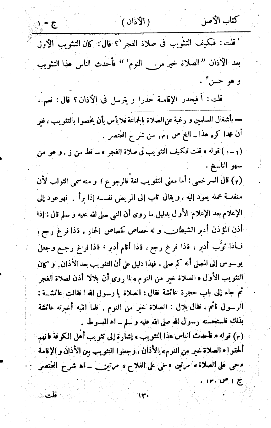 قلت فَكيف التثويب فِي صَلَاة الْفجْر قَالَ كَانَ التثويب الأول بعد الْأَذَان الصَّلَاة خير من النّوم فأحدث النَّاس هَذَا التثويب وَهُوَ حسن