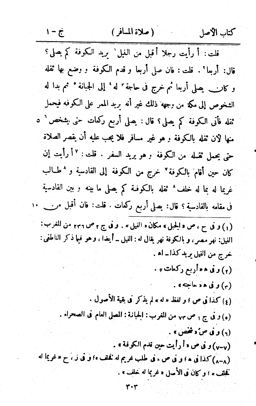 قلت أَرَأَيْت رجلا أقبل من النّيل يُرِيد الْكُوفَة كم يُصَلِّي قَالَ أَرْبعا قلت فَإِن صلى أَرْبعا وَقدم الْكُوفَة وَوضع بهَا ثقله وَكَانَ يُصَلِّي أَرْبعا ثمَّ خرج فِي حَاجَة لَهُ إِلَى الْجَبانَة ثمَّ بدا لَهُ الشخوص إِلَى مَكَّة من وَجهه ذَلِك غير أَنه يُرِيد الْمَمَر على الْكُوفَة فَيحمل ثقله فَأتى الْكُوفَة كم يُصَلِّي قَالَ يُصَلِّي أَربع رَكْعَات حَتَّى يشخص مِنْهَا لِأَن ثقله بِالْكُوفَةِ وَهُوَ غير مُسَافر فَلَا يجب عَلَيْهِ أَن يقصر الصَّلَاة حَتَّى يحمل ثقله من الْكُوفَة وَهُوَ يُرِيد السّفر قلت أَرَأَيْت إِن كَانَ حِين أَقَامَ بِالْكُوفَةِ خرج من الْكُوفَة إِلَى الْقَادِسِيَّة وطالب غريما لَهُ بِمَا لَهُ خلف ثقله بِالْكُوفَةِ كم يُصَلِّي مَا بَينه وَبَين الْقَادِسِيَّة فِي مقَامه بالقادسية قَالَ يُصَلِّي أَربع رَكْعَات قلت فَإِن أقبل من