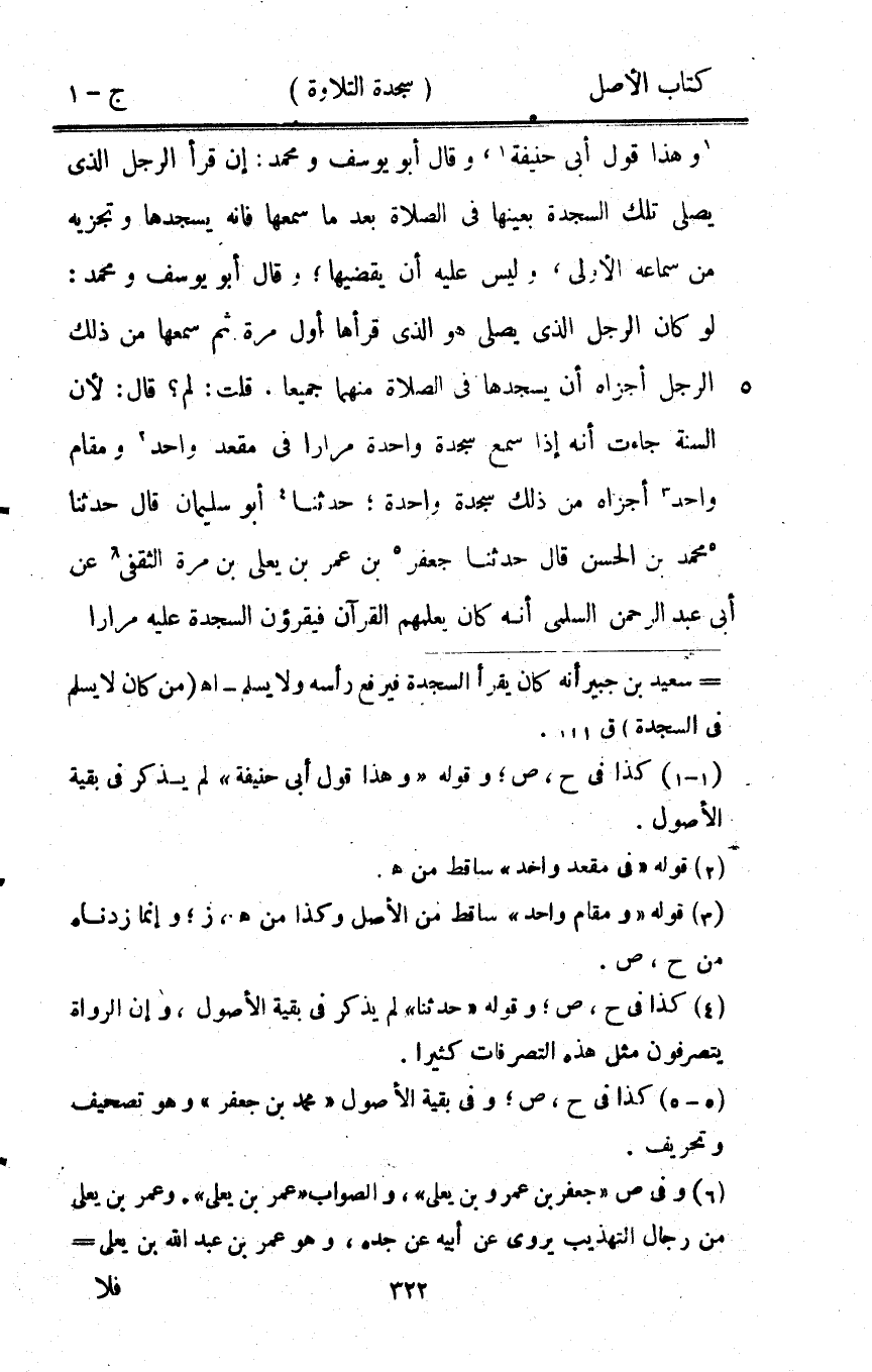 وَهَذَا قَول أبي حنيفَة وَقَالَ أَبُو يُوسُف وَمُحَمّد إِن قَرَأَ الرجل الَّذِي يُصَلِّي تِلْكَ السَّجْدَة بِعَينهَا فِي الصَّلَاة بعد مَا سَمعهَا فَإِنَّهُ يسجدها وتجزيه من سَمَاعه الأولى وَلَيْسَ عَلَيْهِ أَن يَقْضِيهَا وَقَالَ أَبُو يُوسُف وَمُحَمّد لَو كَانَ الرجل الَّذِي يُصَلِّي هُوَ الَّذِي قَرَأَهَا أول مرّة ثمَّ سَمعهَا من ذَلِك الرجل أجزاه أَن يسجدها فِي الصَّلَاة مِنْهُمَا جَمِيعًا قلت لم قَالَ لِأَن السّنة جَاءَت أَنه إِذا سمع سَجْدَة وَاحِدَة مرَارًا فِي مقْعد وَاحِد ومقام وَاحِد أجزاه من ذَلِك سَجْدَة وَاحِدَة حَدثنَا أَبُو سُلَيْمَان قَالَ حَدثنَا مُحَمَّد بن الْحسن قَالَ حَدثنَا جَعْفَر بن عمر بن يعلى بن مرّة الثَّقَفِيّ عَن أبي عبد الرَّحْمَن السّلمِيّ أَنه كَانَ يعلمهُمْ الْقُرْآن فيقرؤن السَّجْدَة عَلَيْهِ مرَارًا
