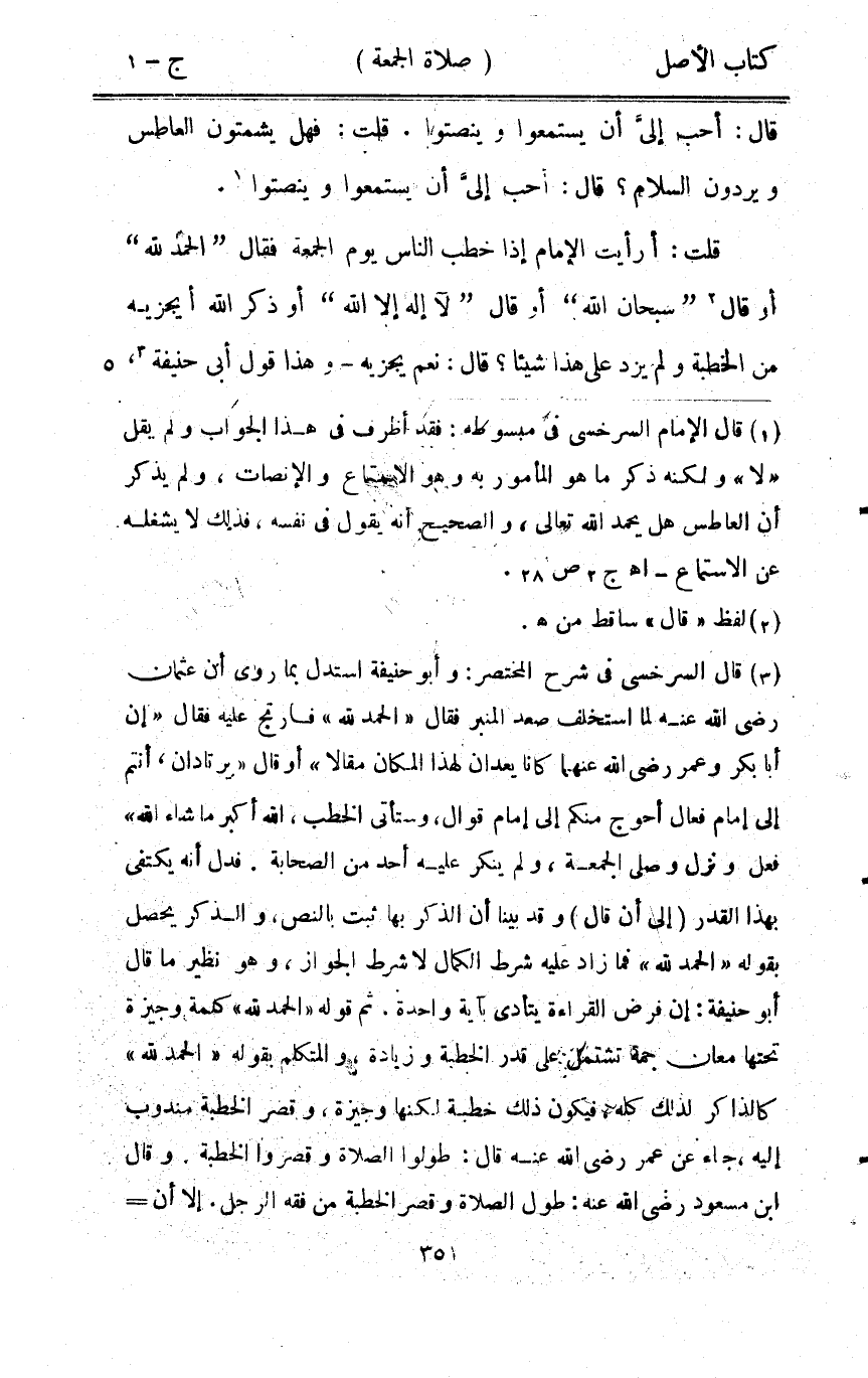 قَالَ أحب إِلَيّ أَن يستمعوا وينصتوا قلت فَهَل يشمتون الْعَاطِس ويردون السَّلَام قَالَ أحب إِلَيّ أَن يستمعوا وينصتوا