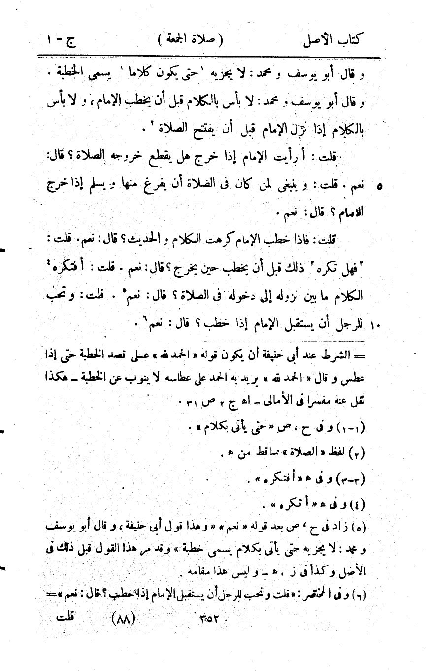 قلت فَإِذا خطب الإِمَام كرهت الْكَلَام والْحَدِيث قَالَ نعم قلت فَهَل تكره ذَلِك قبل أَن يخْطب حِين يخرج قَالَ نعم قلت أفتكره الْكَلَام مَا بَين نُزُوله إِلَى دُخُوله فِي الصَّلَاة قَالَ نعم قلت وتحب للرجل أَن يسْتَقْبل الإِمَام إِذا خطب قَالَ نعم