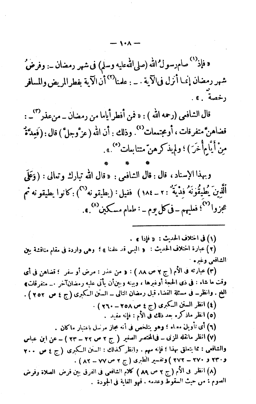 (8) انْظُر فى الْأُم (ج 2 ص 89) كَلَام الشَّافِعِي فى الْفرق بَين فرض الصَّلَاة وَفرض الصَّوْم: من حَيْثُ السُّقُوط وَعَدَمه، فَهُوَ الْغَايَة فى الْجَوْدَة.