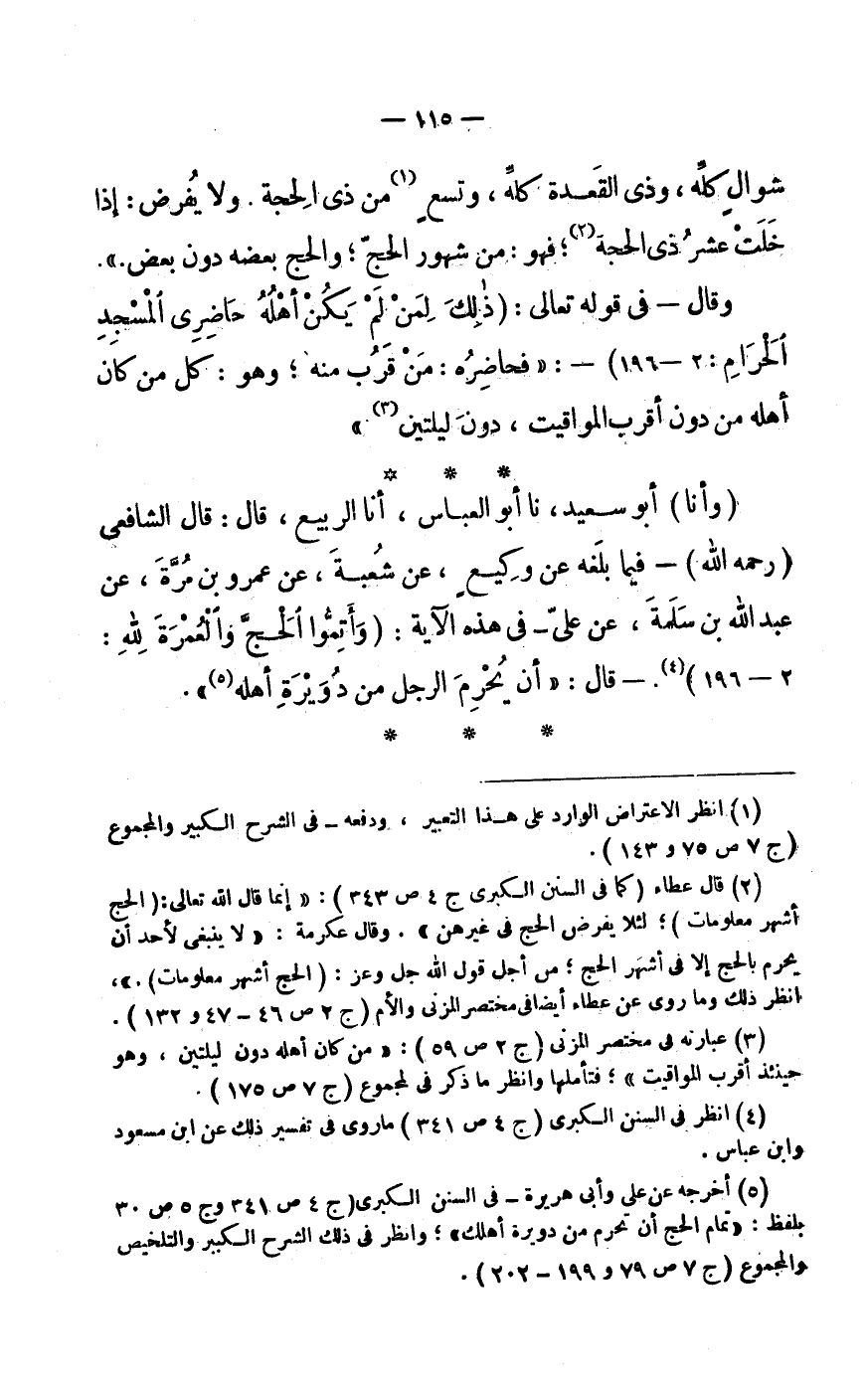 (2) قَالَ عَطاء (كَمَا فى السّنَن الْكُبْرَى ج 4 ص 343) : «إِنَّمَا قَالَ الله تَعَالَى: (الْحَجُّ أَشْهُرٌ مَعْلُوماتٌ) لِئَلَّا يفْرض الْحَج فى غَيْرهنَّ» . وَقَالَ عِكْرِمَة: «لَا ينبغى لأحد أَن يحرم بِالْحَجِّ إِلَّا فى أشهر الْحَج من أجل قَول الله جلّ وَعز: (الْحَجُّ أَشْهُرٌ مَعْلُوماتٌ) .» ،