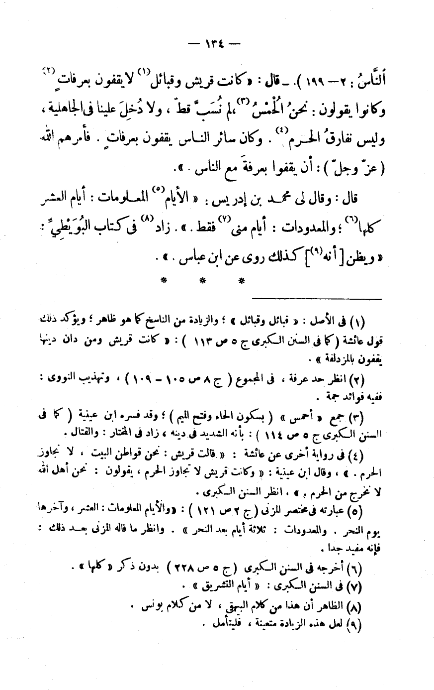 (1) فى الأَصْل: «قبائل وقباثل» وَالزِّيَادَة من النَّاسِخ كَمَا هُوَ ظَاهر ويؤكد ذَلِك قَول عَائِشَة (كَمَا فى السّنَن الْكُبْرَى ج 5 ص 113) : «كَانَت قُرَيْش وَمن دَان دينهَا يقفون بِالْمُزْدَلِفَةِ» .