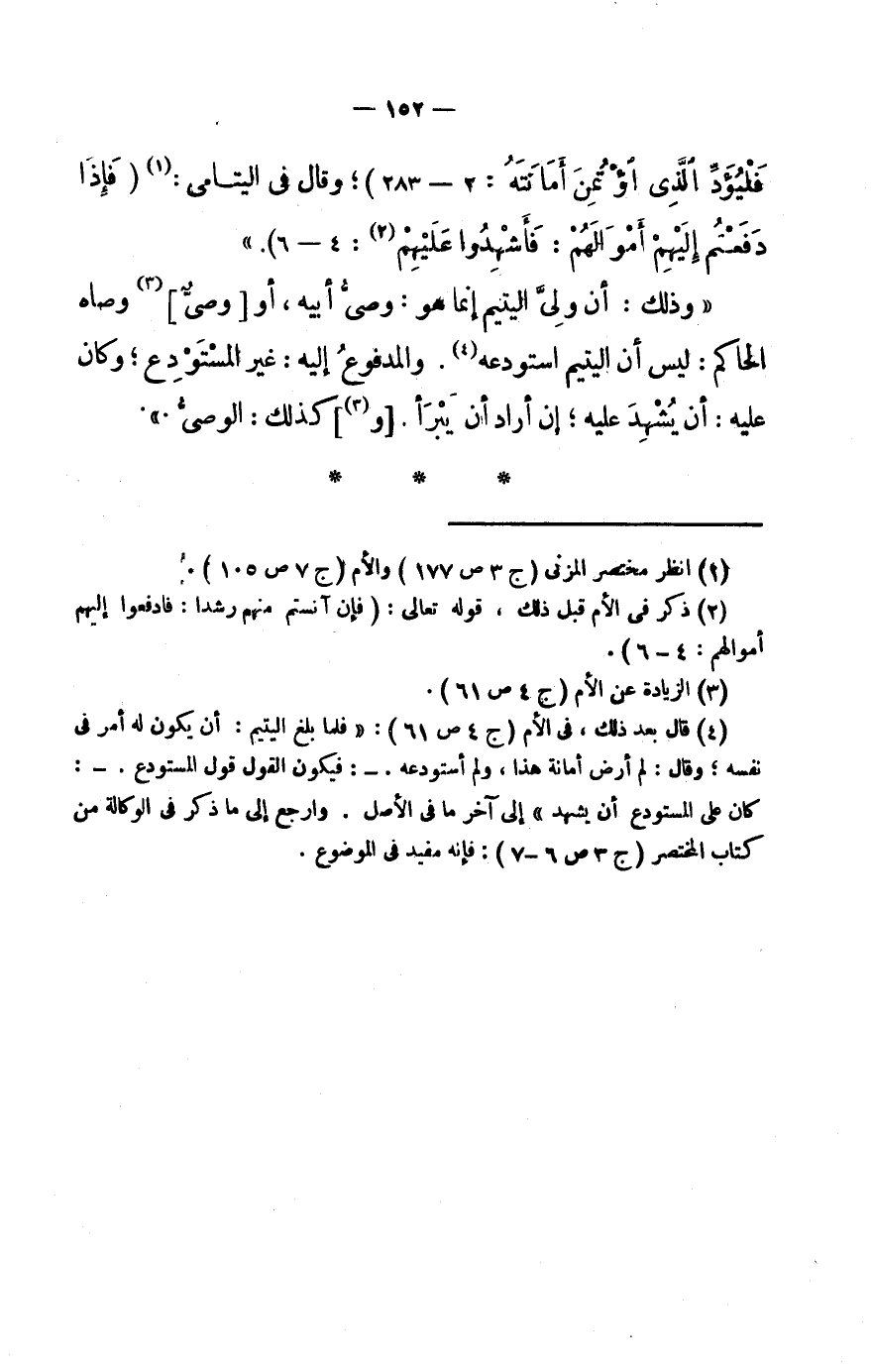 (فَلْيُؤَدِّ الَّذِي اؤْتُمِنَ أَمانَتَهُ: 2- 283) وَقَالَ فِي الْيَتَامَى: «1» (فَإِذا دَفَعْتُمْ إِلَيْهِمْ أَمْوالَهُمْ: فَأَشْهِدُوا عَلَيْهِمْ «2» : 4- 6) .»