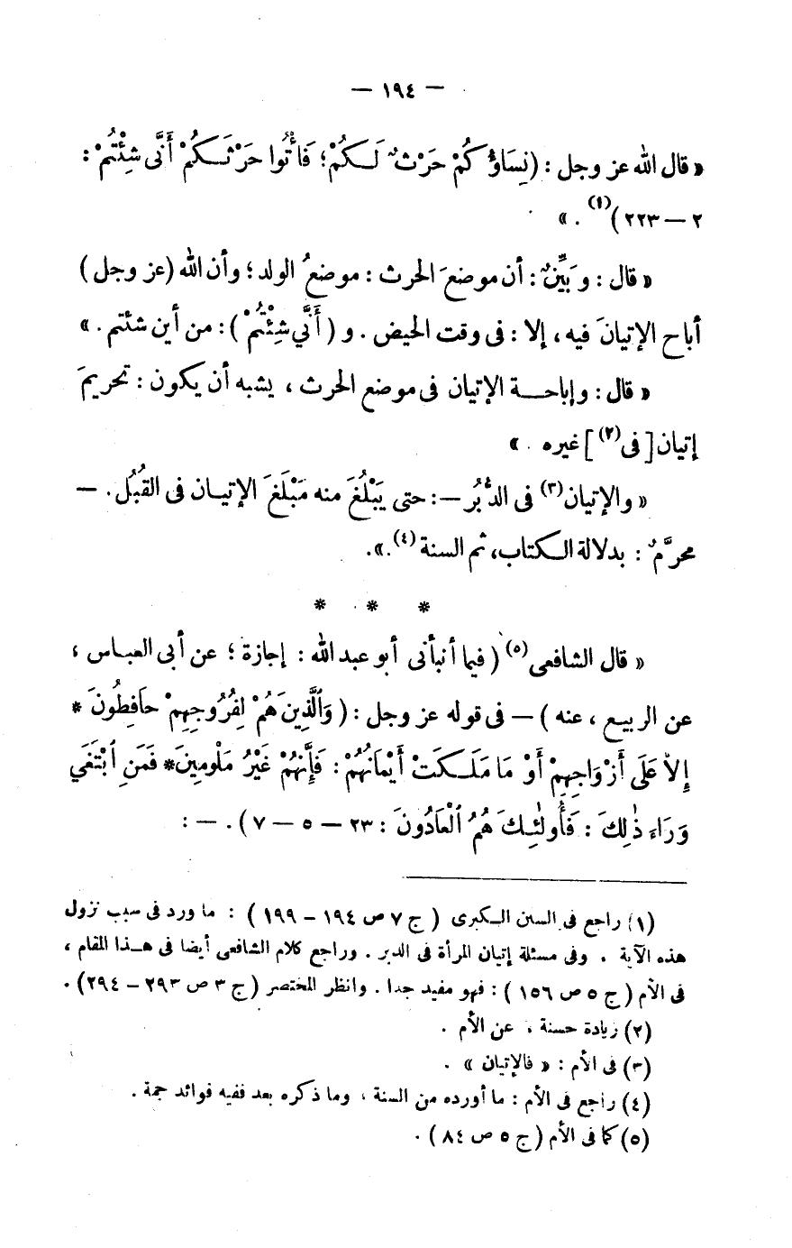 (1) رَاجع فى السّنَن الْكُبْرَى (ج 7 ص 194- 199) : مَا ورد فى سَبَب نزُول هَذِه الْآيَة. وفى مسئلة إتْيَان الْمَرْأَة فى الدبر. وراجع كَلَام الشَّافِعِي أَيْضا فى هَذَا الْمقَام، فى الْأُم (ج 5 ص 156) : فَهُوَ مُفِيد جدا. وَانْظُر الْمُخْتَصر (ج 3 ص 293- 294) .