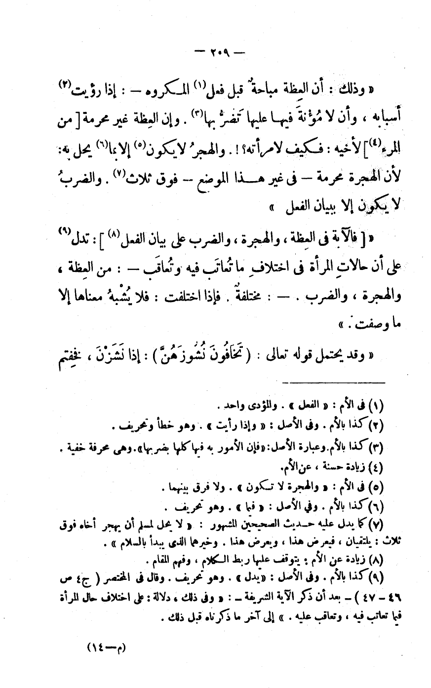 (9) كَذَا بِالْأُمِّ. وفى الأَصْل: «يدل» . وَهُوَ تَحْرِيف. وَقَالَ فى الْمُخْتَصر (ج 4 ص 46- 47) - بعد أَن ذكر الْآيَة الشَّرِيفَة-: «وفى ذَلِك، دلَالَة: على اخْتِلَاف حَال الْمَرْأَة فِيمَا تعاقب فِيهِ، وتعاقب عَلَيْهِ.» إِلَى آخر مَا ذَكرْنَاهُ قبل ذَلِك.