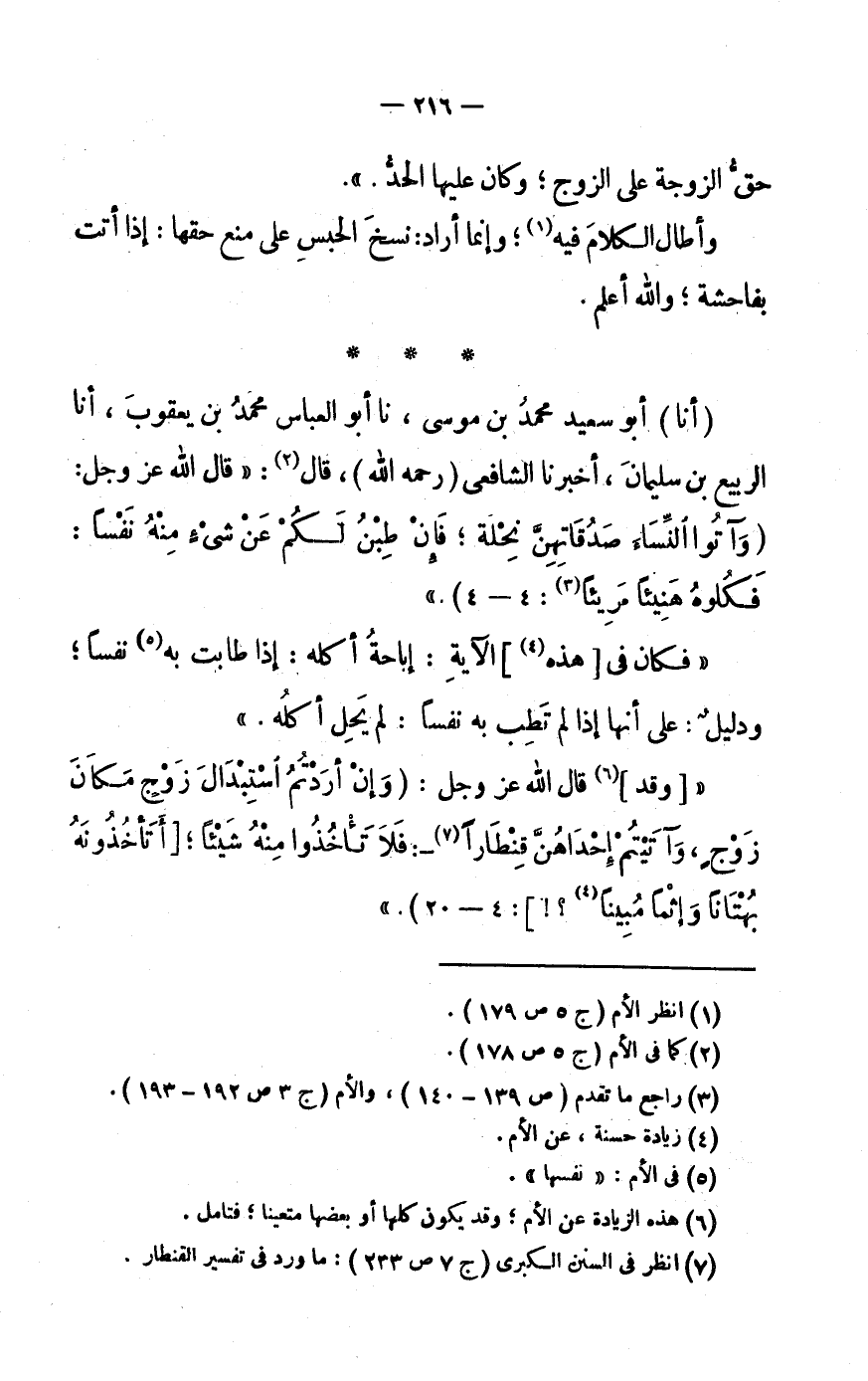 (5) فى الْأُم: «نَفسهَا» .