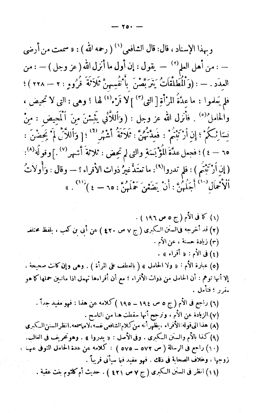 (10) رَاجع فى الرسَالَة (ص 572- 575) : كَلَامه عَن عدَّة الْحَامِل الْمُتَوفَّى عَنْهَا زَوجهَا، وَخلاف الصَّحَابَة فى ذَلِك. فَهُوَ مُفِيد فِيمَا سيأتى قَرِيبا.
