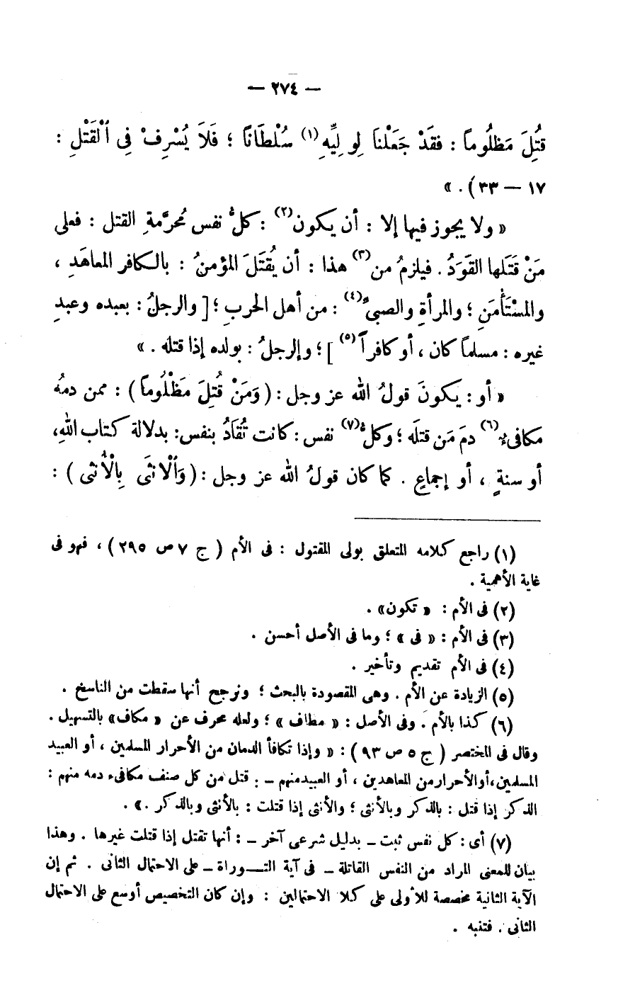 (1) رَاجع كَلَامه الْمُتَعَلّق بولِي الْمَقْتُول: فى الْأُم (ج 7 ص 295) ، فَهُوَ فى غَايَة الأهمية.