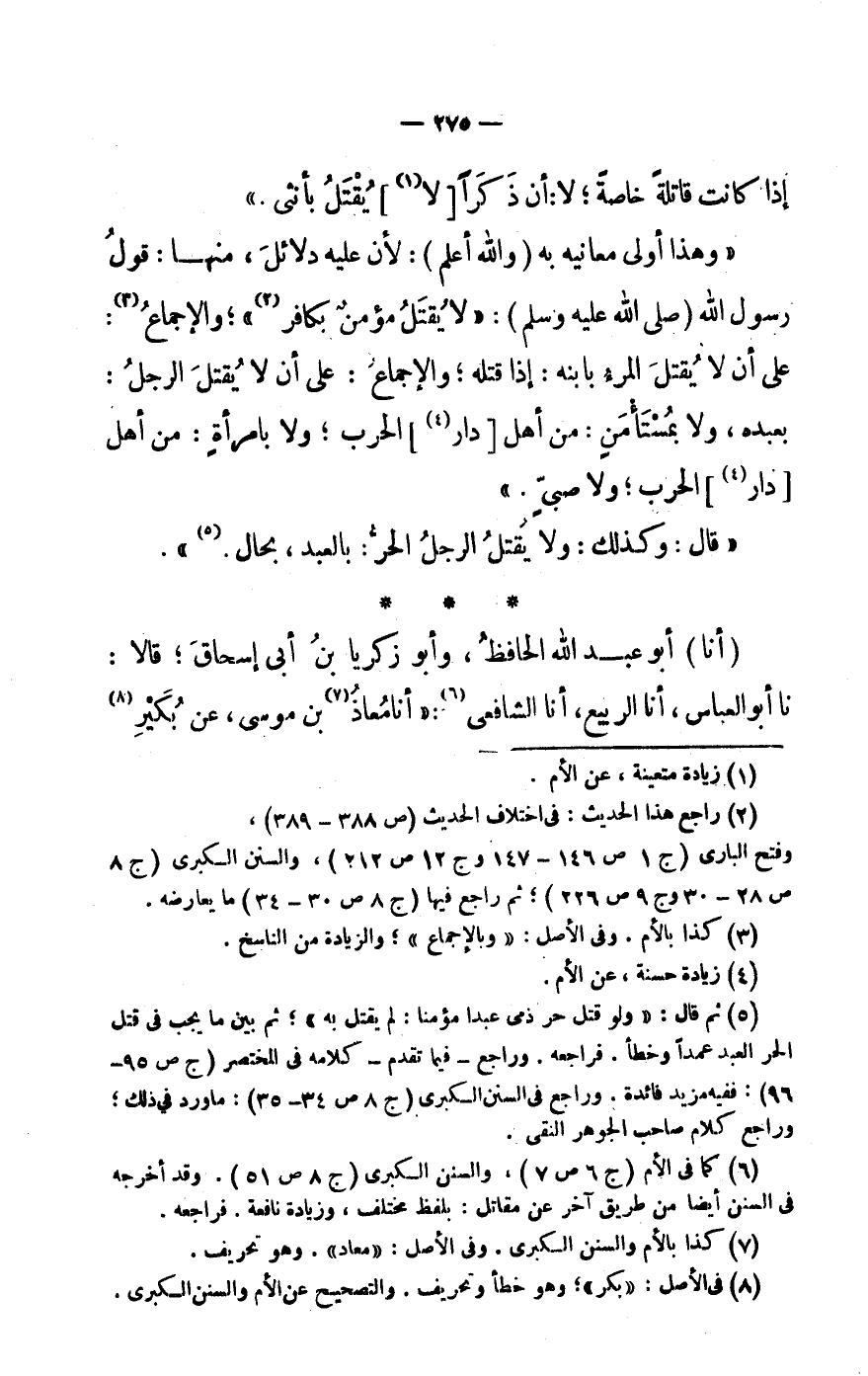 (2) رَاجع هَذَا الحَدِيث: فى اخْتِلَاف الحَدِيث (ص 388- 389) ، وَفتح الْبَارِي (ج 1 ص 146- 147 وَج 12 ص 212) ، وَالسّنَن الْكُبْرَى (ج 8 ص 28- 30 وَج 9 ص 226) ثمَّ رَاجع فِيهَا (ج 8 ص 30- 34) مَا يُعَارضهُ.