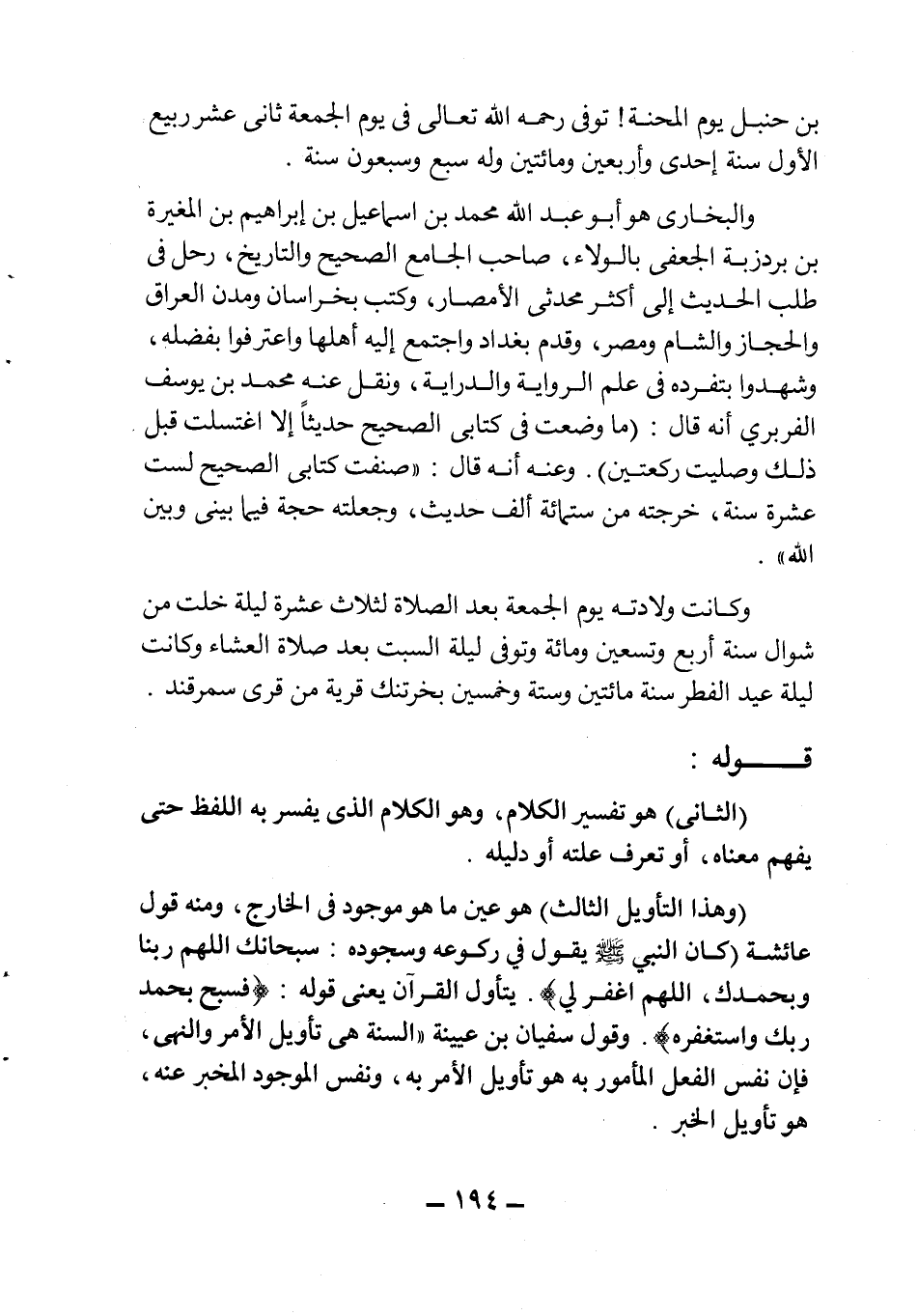 "وهذا التأويل الثالث" هو عين ما هو موجود في الخارج، ومنه قول عائشة: "كان النبي صلى الله عليه وسلم يقول في ركوعه وسجوده: سبحانك اللهم ربنا وبحمدك، اللهم اغفر لي. يتأول القرآن يعني قوله: {فَسَبِّحْ بِحَمْدِ رَبِّكَ وَاسْتَغْفِرْهُ} . وقول سفيان بن عيينة "السنة هي تأويل الأمر والنهي"، فإن نفس الفعل المأمور به هو تأويل الأمر به، ونفس الموجود المخبر عنه هو تأويل الخبر.