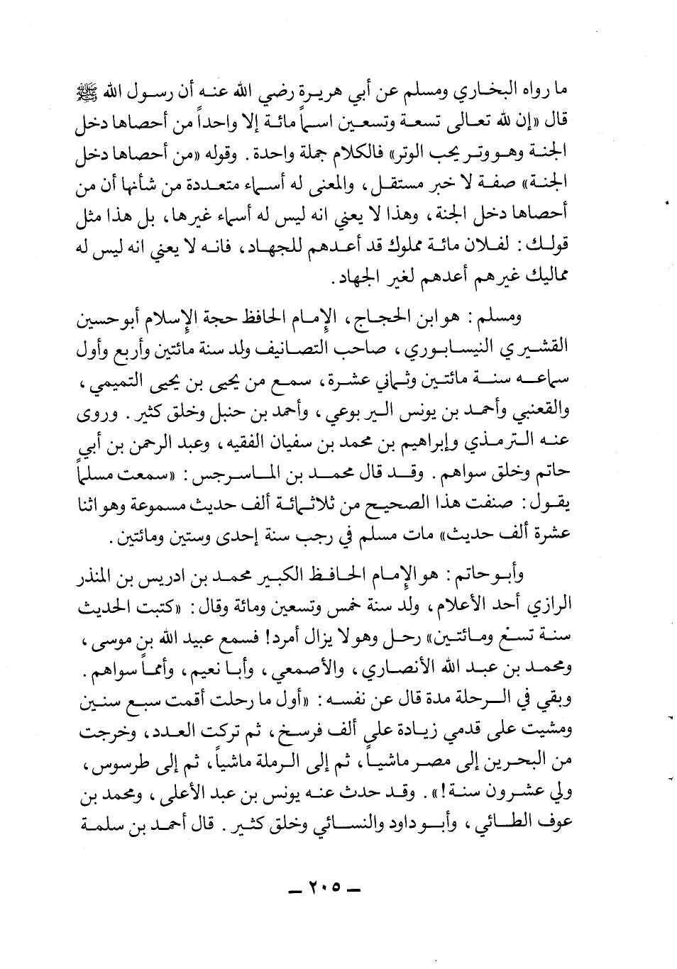 ومسلم: هو ابن الحجاج، الإمام الحافظ حجة الإسلام أبو حسين القشيري النيسابوري، صاحب التصانيف ولد سنة مائتين وأربع وأول سماعه سنة مائتين وثماني عشرة، سمع من يحيى بن يحيى التميمي، والقعنبي وأحمد بن يونس اليربوعي، وأحمد بن حنبل وخلق كثير. وروى عنه الترمذي وإبراهيم بن محمد بن سفيان الفقيه، وعبد الرحمن بن أبي حاتم وخلق سواهم. وقد قال محمد من الماسرجس: "سمعت مسلماًِ يقول: صنفت هذا الصحيح من ثلاثمائة ألف حديث مسموعة وهو اثنا عشرة ألف حديث" مات مسلم في رجب سنة إحدى وستين ومائتين.