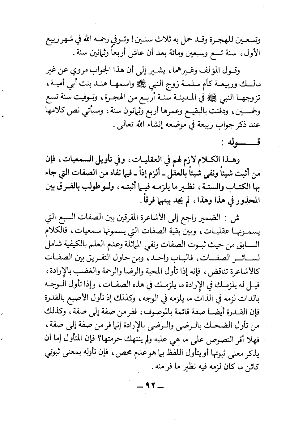 ش: الضمير راجع إلى الأشاعرة المفرقين بين الصفات السبع التي يسمونها عقليات، وبين بقية الصفات التي يسمونها سمعيات، فالكلام السابق من حيث ثبوت الصفات ونفي المماثلة وعدم العلم بالكيفية شامل لسائر الصفات، فالباب واحد، ومن حاول التفريق بين الصفات كالأشاعرة تناقض، فإنه إذا تأول المحبة والرضا والرحمة والغضب بالإرادة، قيل له يلزمك في الإرادة ما يلزمك في الصفات، وإذا تأول الوجه بالذات لزمه في الذات ما يلزمه في الوجه، وكذلك إذ تأول الإصبع بالقدرة فإن القدرة أيضا صفة قائمة بالموصوف، ففر من صفة إلى صفة، وكذلك من تأول الضحك بالرضى والرضى بالإرادة إنما فر من صفة إلى صفة، فهلا أقر النصوص على ما هي عليه ولم ينتهك حرمتها؟ فإن المتأول إما أن يذكر معنى ثبوتها أو يتأول اللفظ بما هو عدم محض، فإن تأوله بمعنى ثبوتي كائن ما كان لزمه فيه نظير ما فر منه.