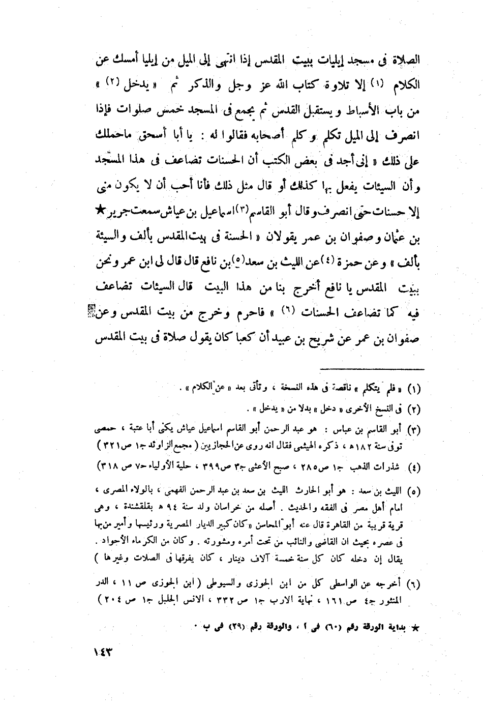 جرير بن عثمان وصفوان بن عمر يقولان: "الحسنة في بيت المقدس بألف والسيئة بألف".