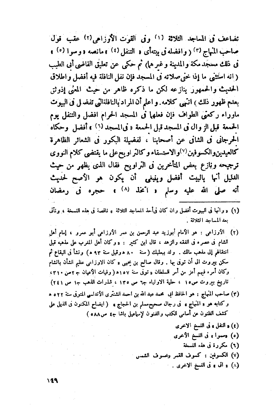 تضاعف في المساجد الثلاثة وفي القوت الأوزاعي عقب قول صاحب المنهاج (وأفضله في بيته أي "التنفل" ما نصه "وسوى" فى ذلك مسجد مكة والمدينة وغيرهما) ثم حكى عن تعليق القاضي أبي الطيب (أنه استثنى ما إذا خفي صلاته في المسجد فإن نفل النافلة فيه أفضل وإطلاق الحديث والجمهور ينازعه لكن ما ذكره ظاهر من حيث المعنى إذ وثق بعدم ظهور ذلك) انتهى كلامه.